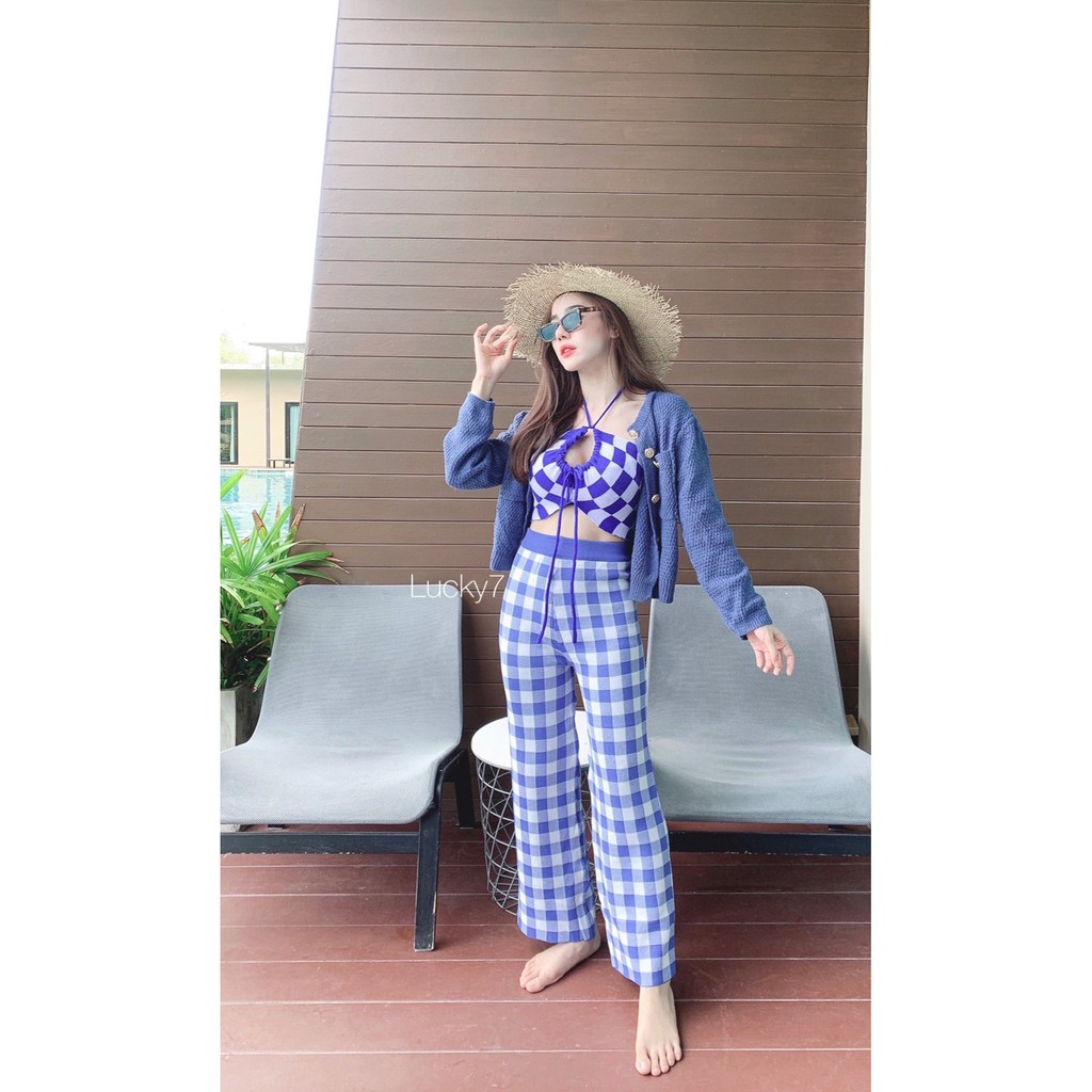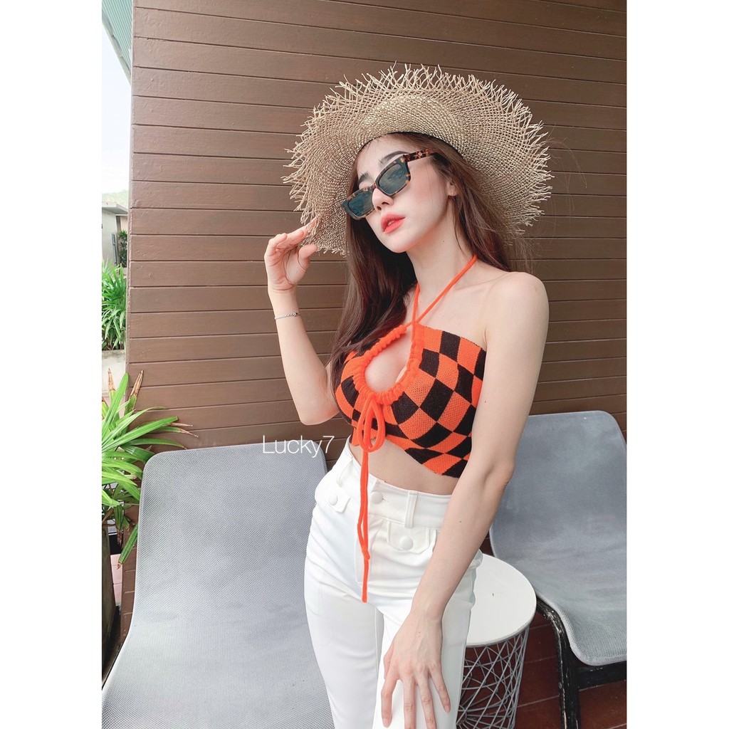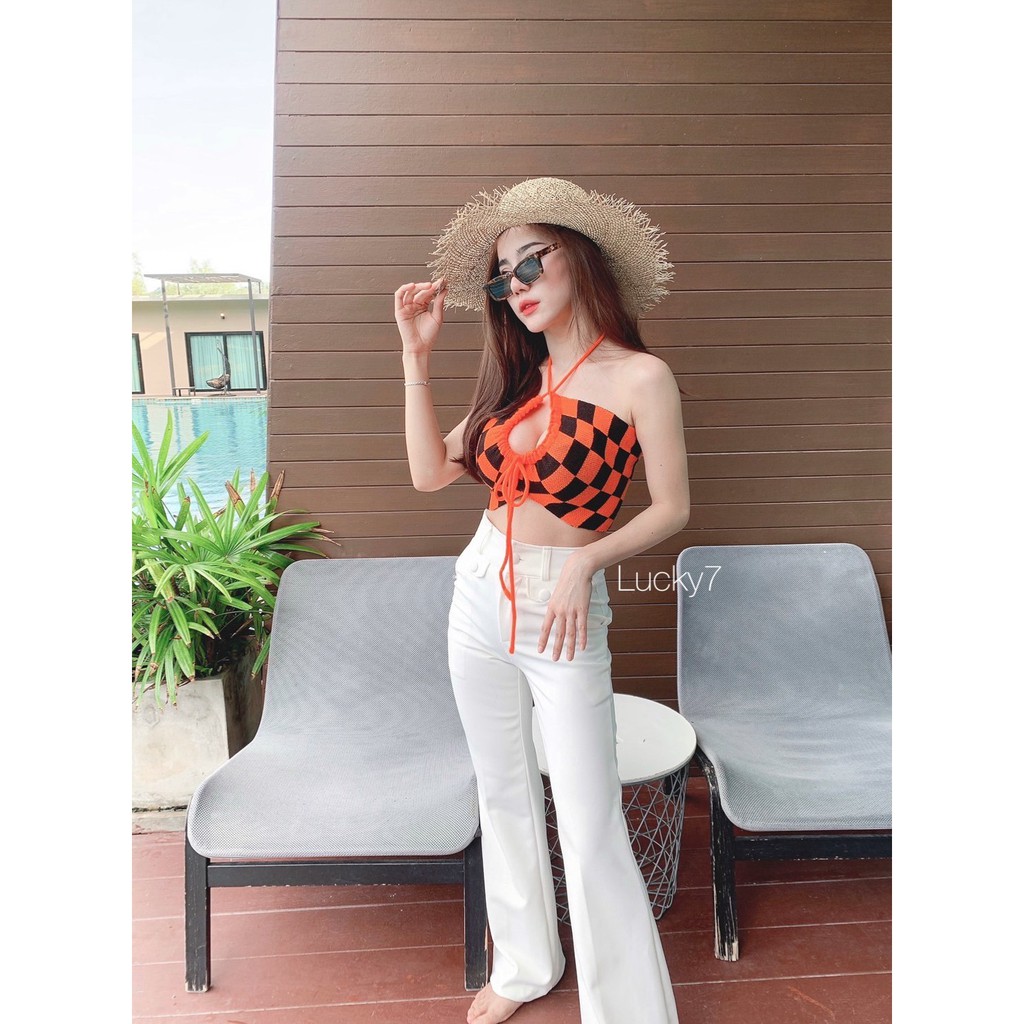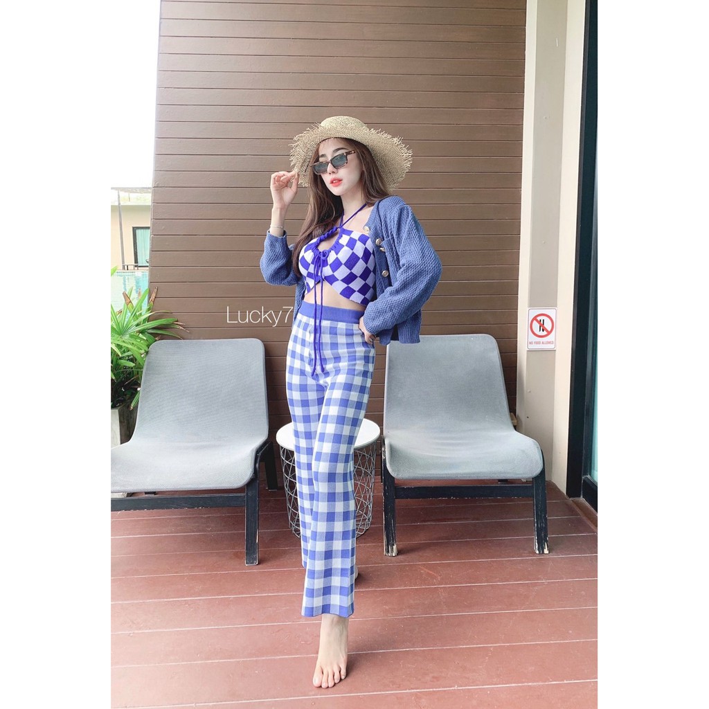 BY IRa ท็อปไหมพรมทอลายตารางทั้งตัว น่ารักมากกกก เซ็กซี่สุดๆ สายฝอควรมีจ้า