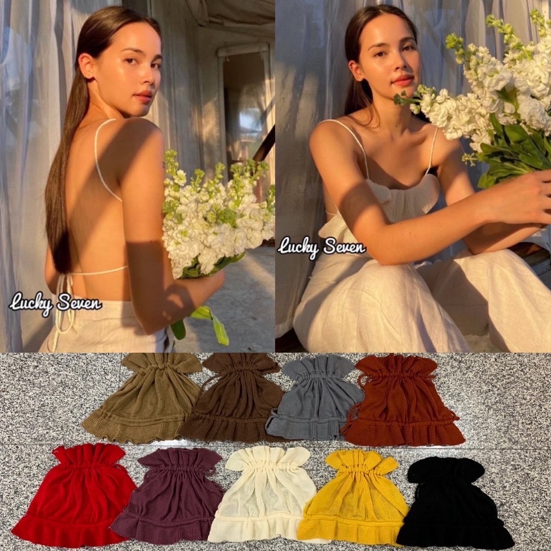 BY IRA สายเดี่ยว ไหมพรม เสื้อเว้าหลัง เสื้อสายฝอ จับจีบขยุ้มๆ SEXY yaya ญาญ่า