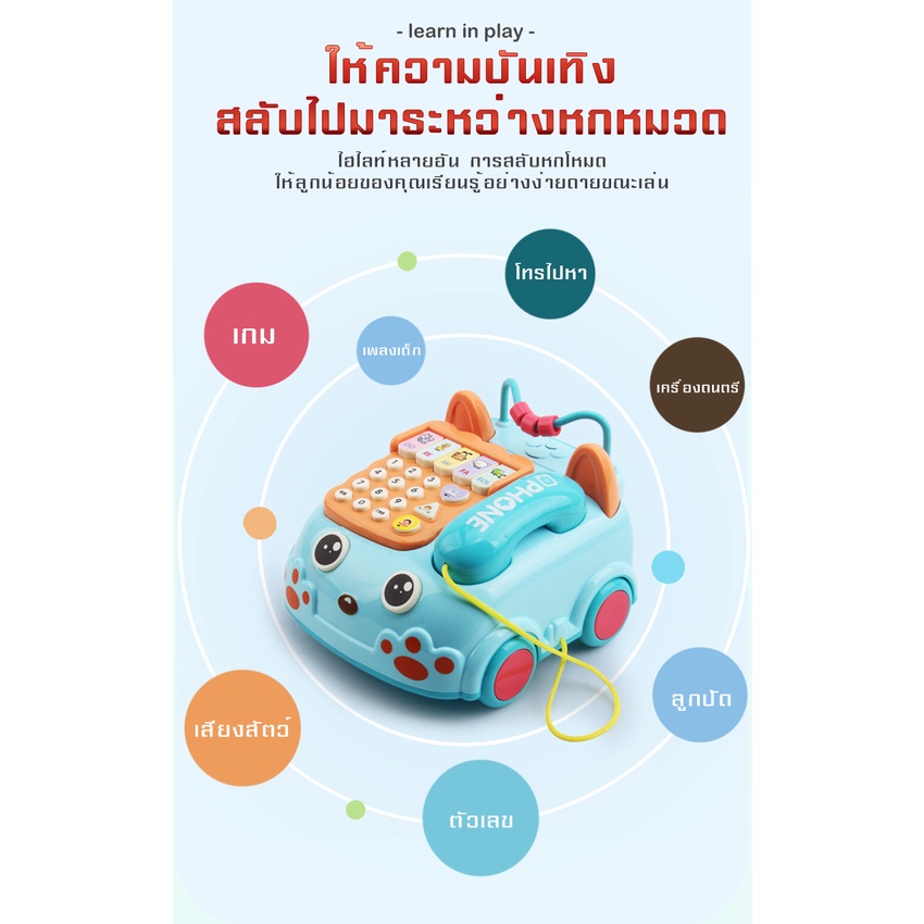 NEW ของเล่นรถโทรศัพท์ โทรศัพท์เล่นได้ กดได้ มีเสียงเพลง มีไฟ มีล้อลากได้เหมือนรถ มีเสียงกด สีสันสวย น่ารัก มีให้เลือก QQ