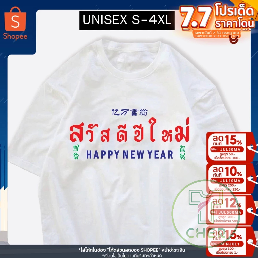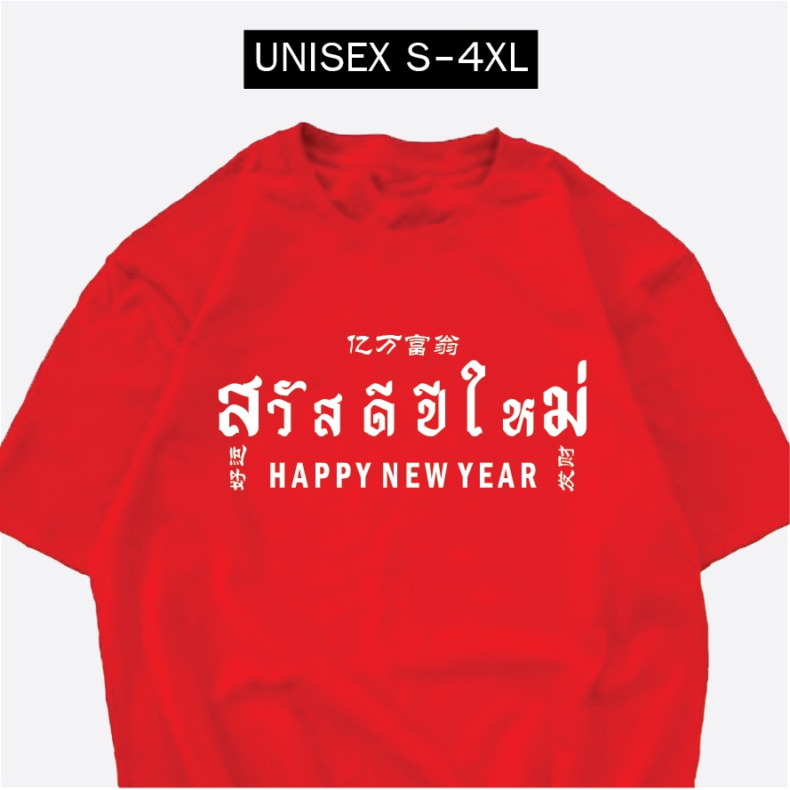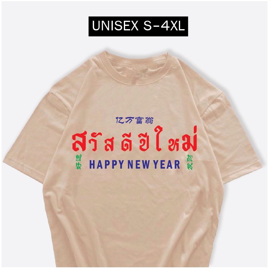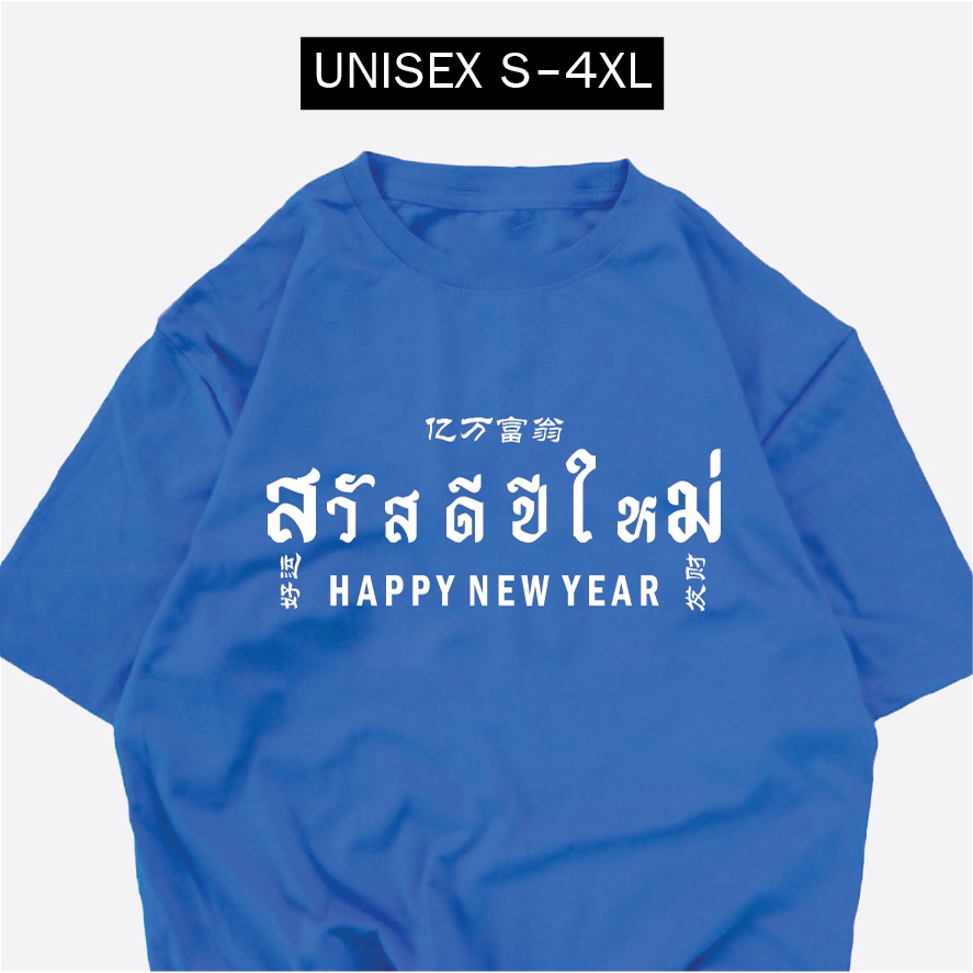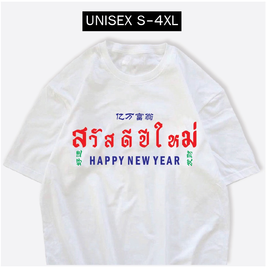 เสื้อยืด สวัสดีปีใหม่ 3ภาษา 2023 ผ้าCOTTON 100%