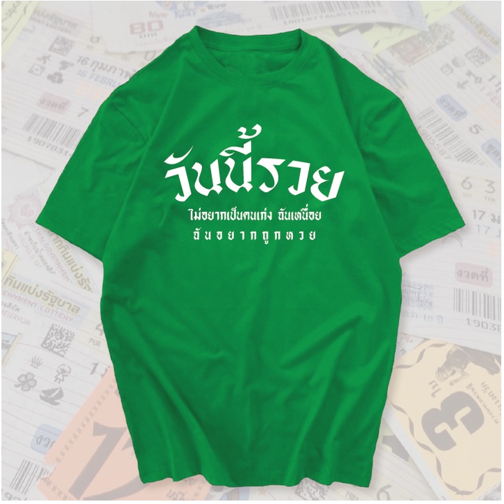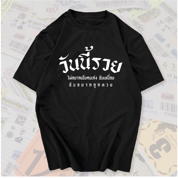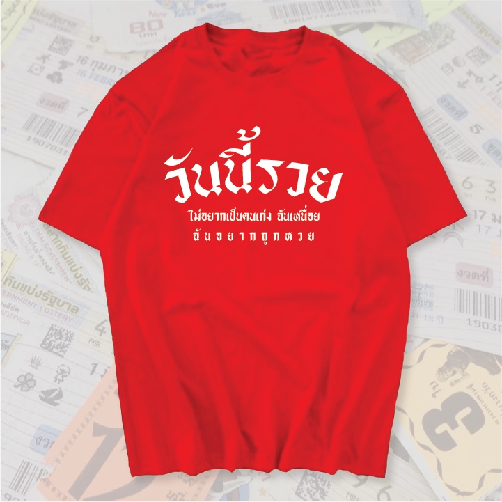 เสื้อยืด วันนี้รวย สกรีนคำพูดโดนๆ ผ้าCOTTON100