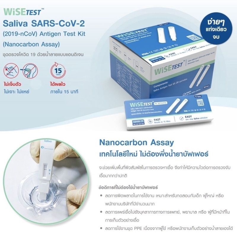 ชุดตรวจโควิด WiSE test พร้อมส่ง ทดสอบง่ายด้วยน้ำลาย ใช้จุ่มหรื ออม ตรวจได้ทุกสายพันธุ์ เหมาะสำหรับเด็ก