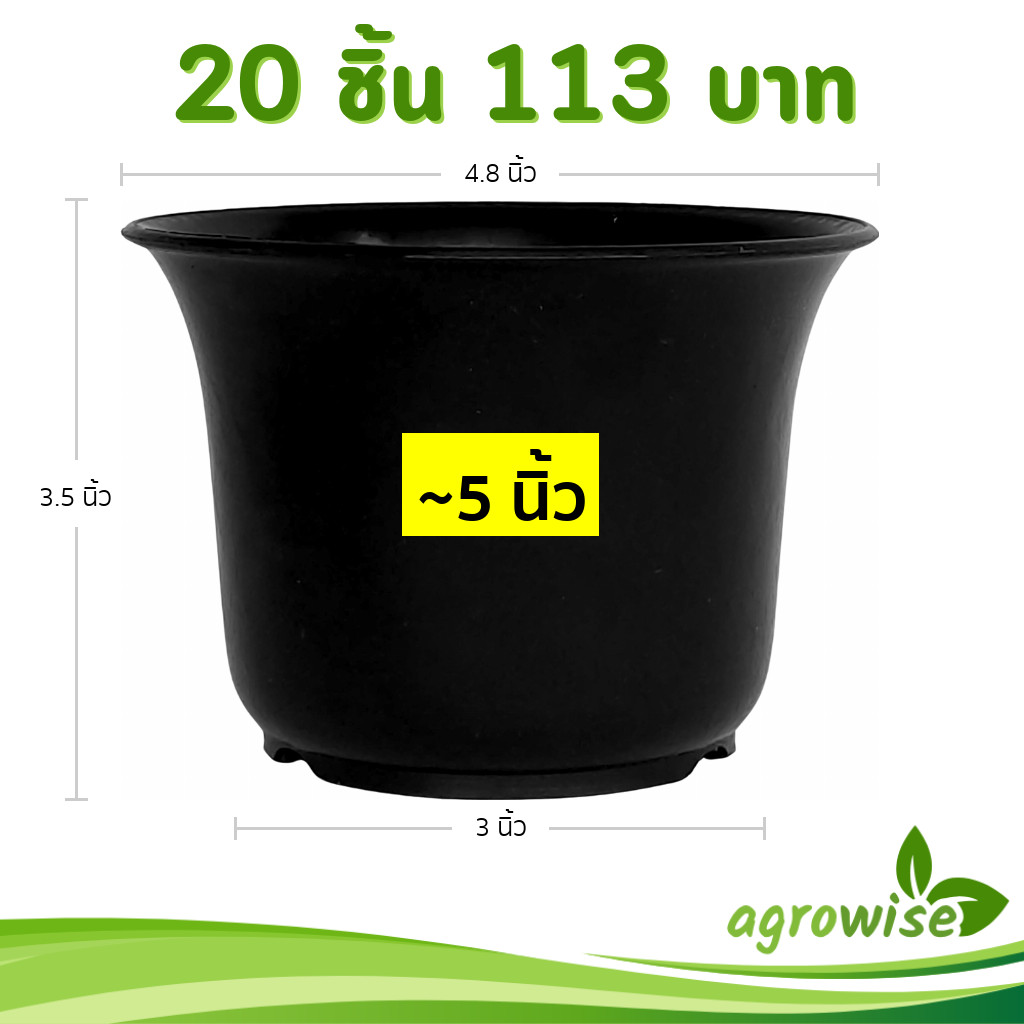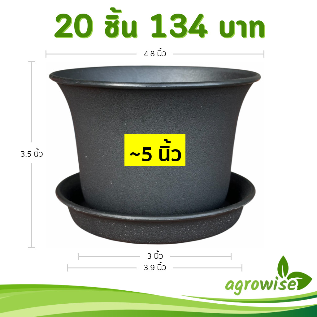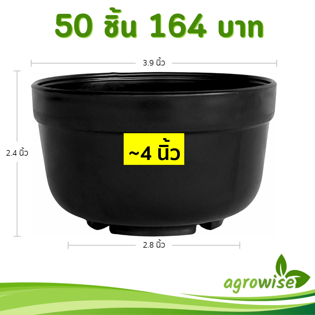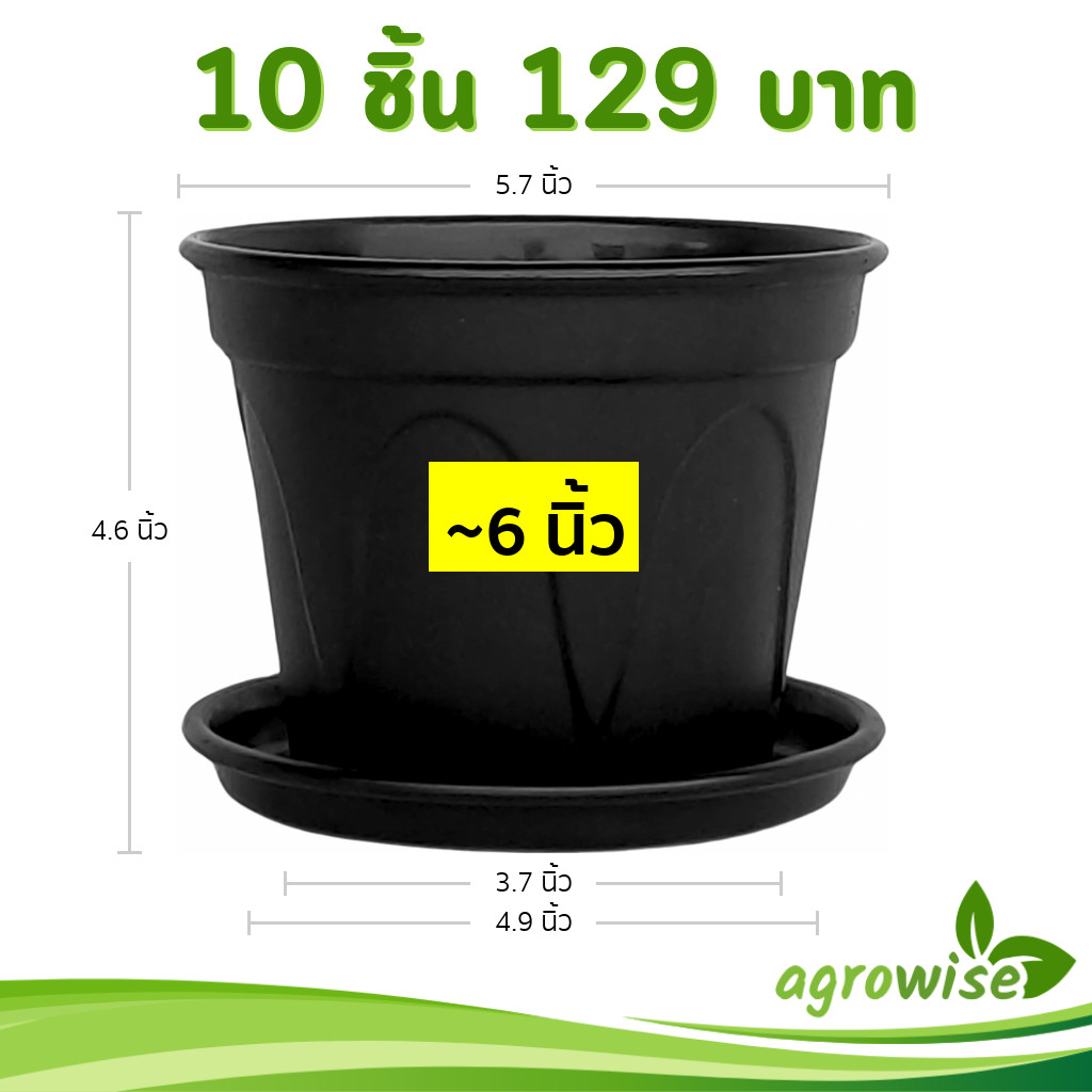 กระถาง ทรงชาม ขนาด 9.5 นิ้ว สีดำ