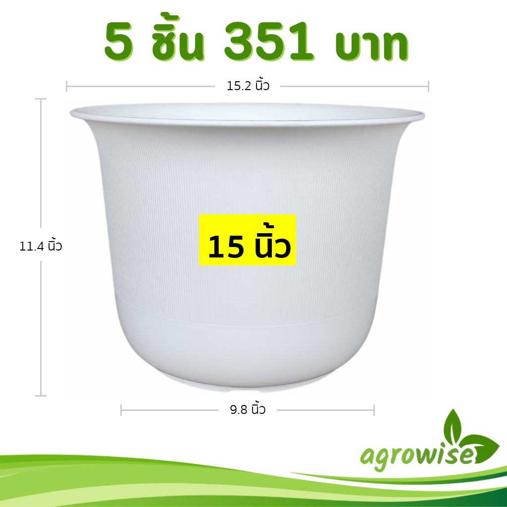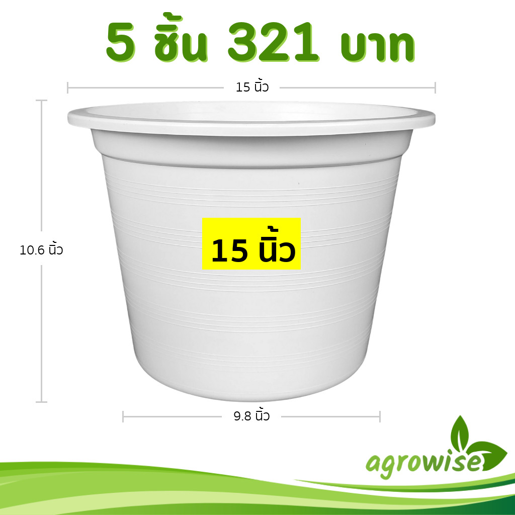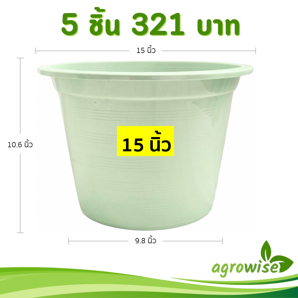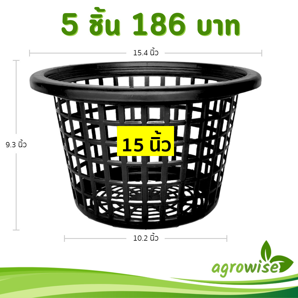 กระถาง กระถางต้นไม้ กระถางพลาสติก เบอร์ 15 นิ้ว สีดำ 5 ใบ