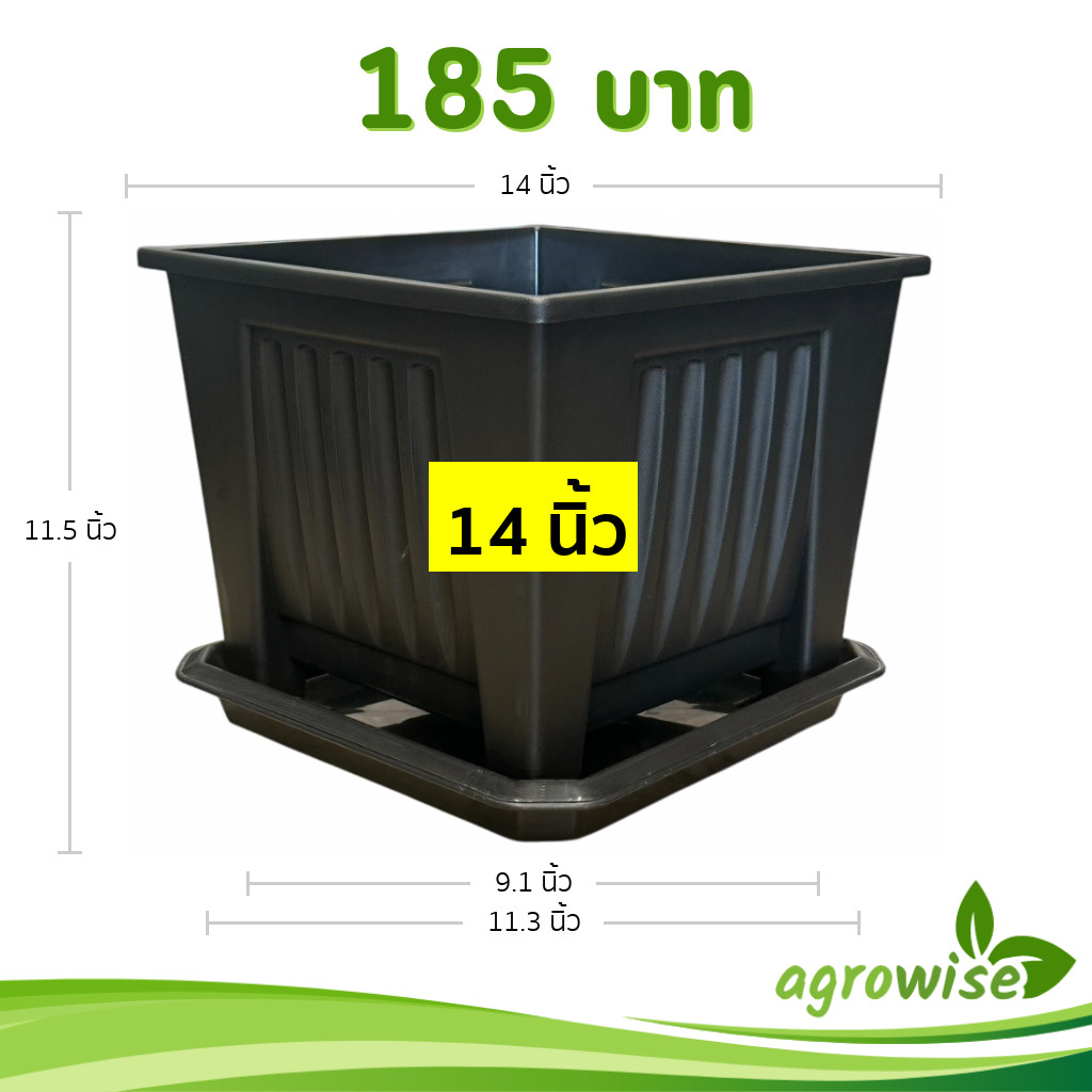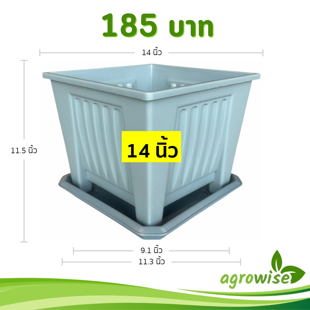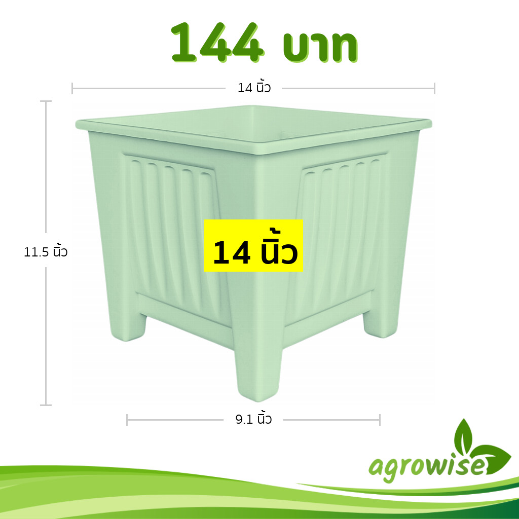 กระถางต้นไม้ กระถางกุหลาบ กระถางสี่เหลี่ยมทรงสูง 13 นิ้ว สีเขียวพาสเทล Bundle 5 ใบ ชิ้น อัน