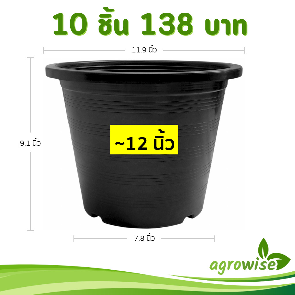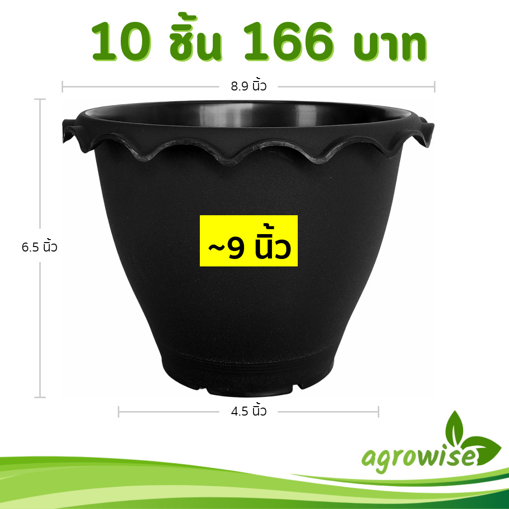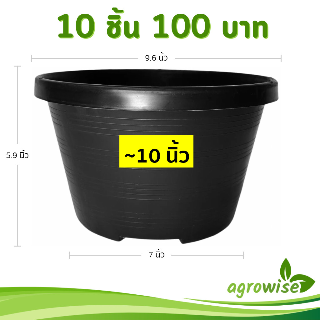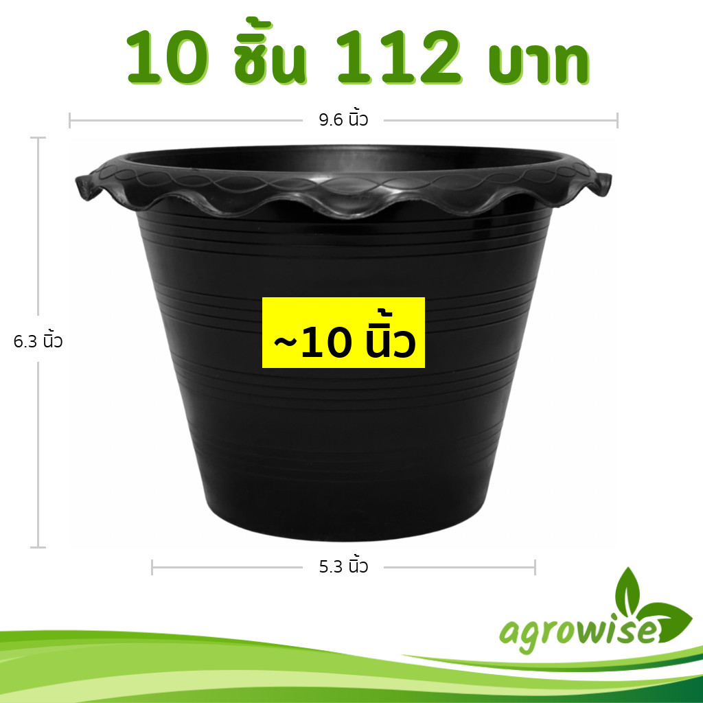 กระถาง กระถางทรงถ้วย กระถางเตี้ย ขนาด เบอร์ 10 9.5 นิ้ว สีดำ ยกมัด 10 ใบ