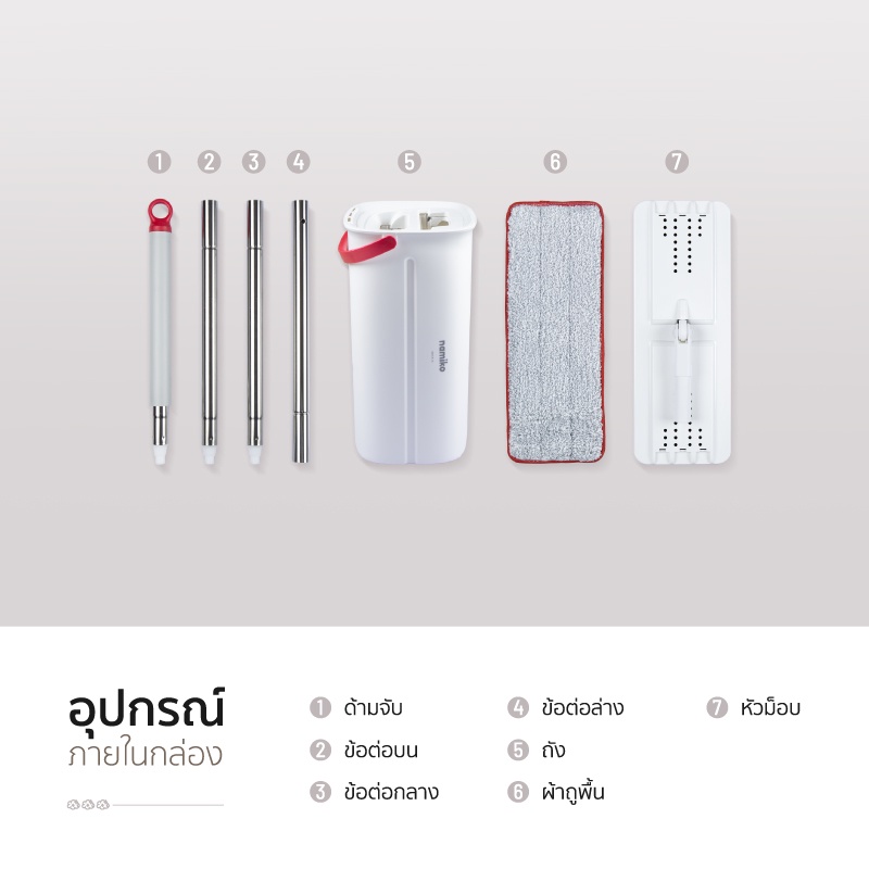 Namiko ชุดไม้ถูพื้นพร้อมถังปั่น Flat Mop FM1 - Simple White