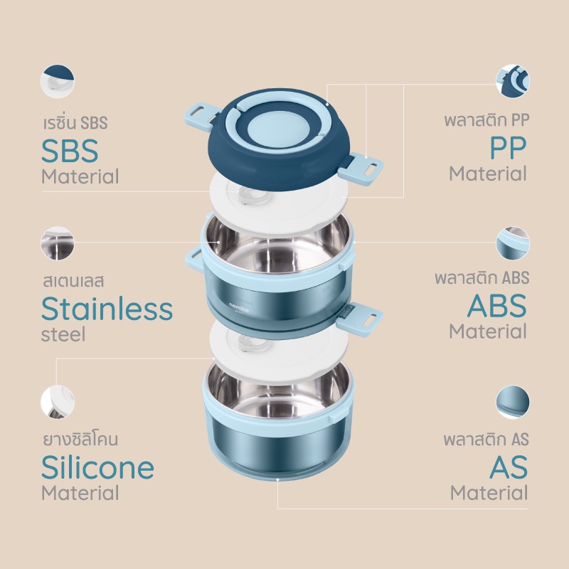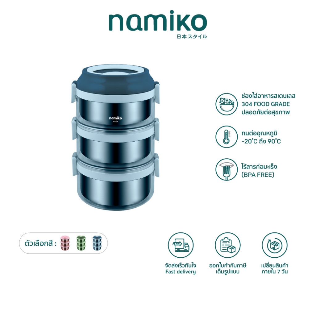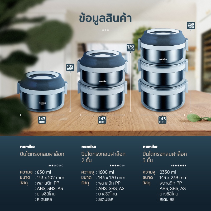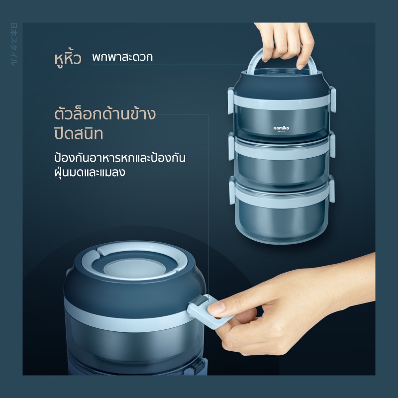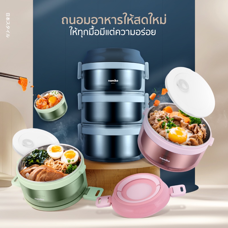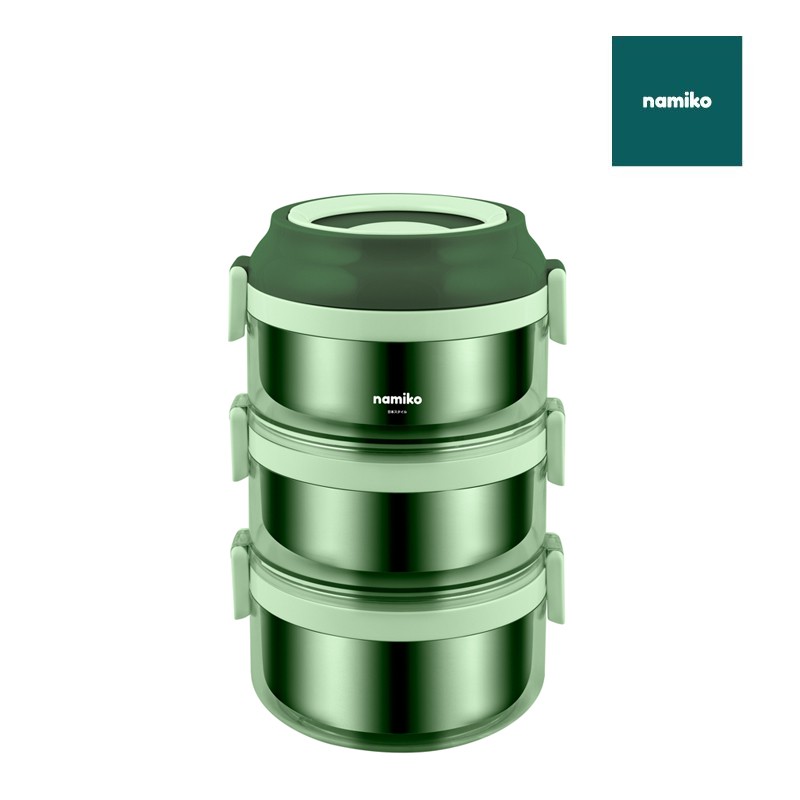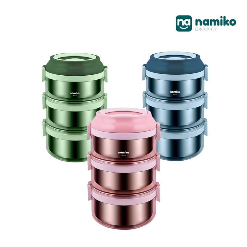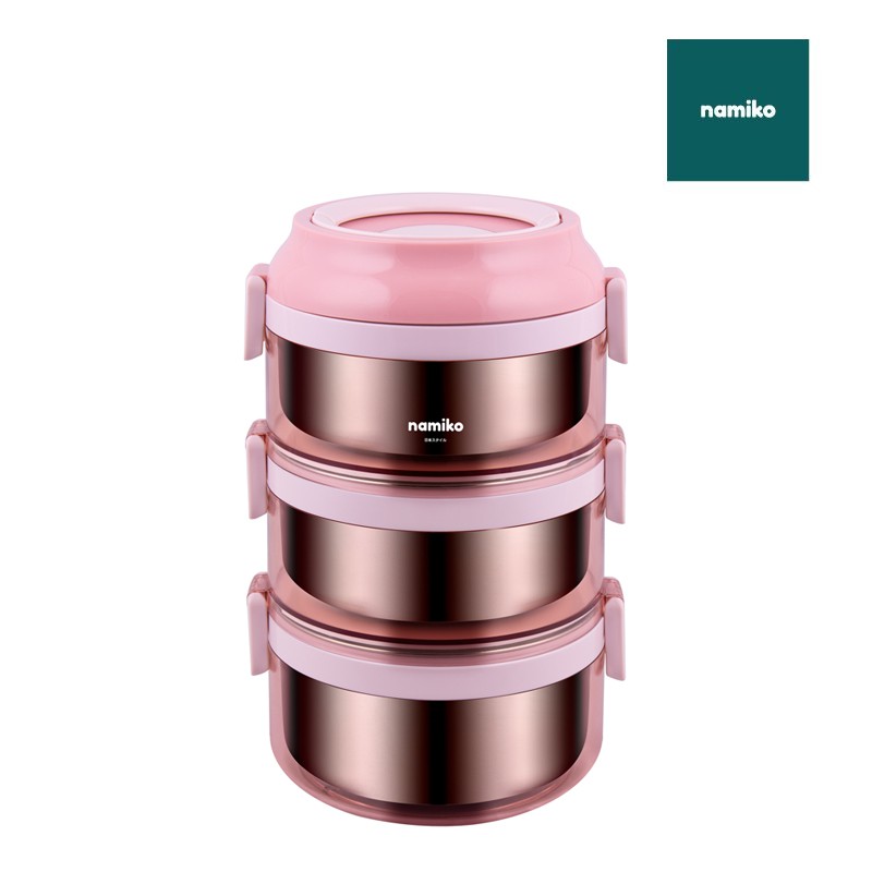 Namiko ปิ่นโตสเตนเลสทรงกลมฝาล็อค 1-3 ชั้น (ไม่เป็นสนิม)