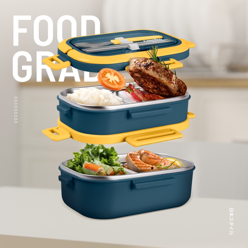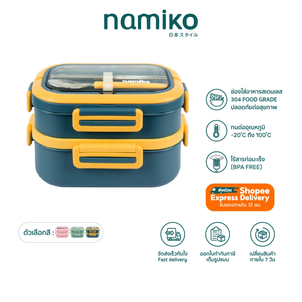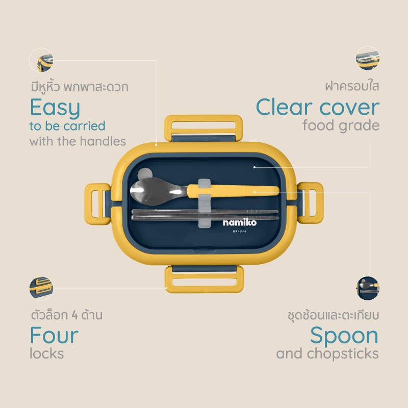 Namiko กล่องอาหารสเตนเลสฝาล็อก พร้อมช้อนและตะเกียบ 850, 1,650 ml