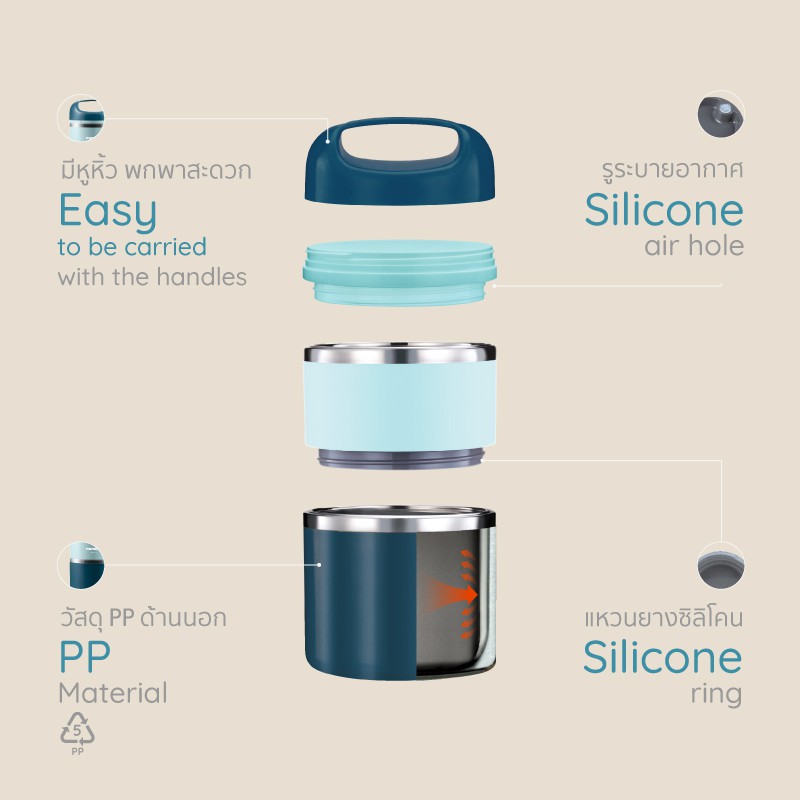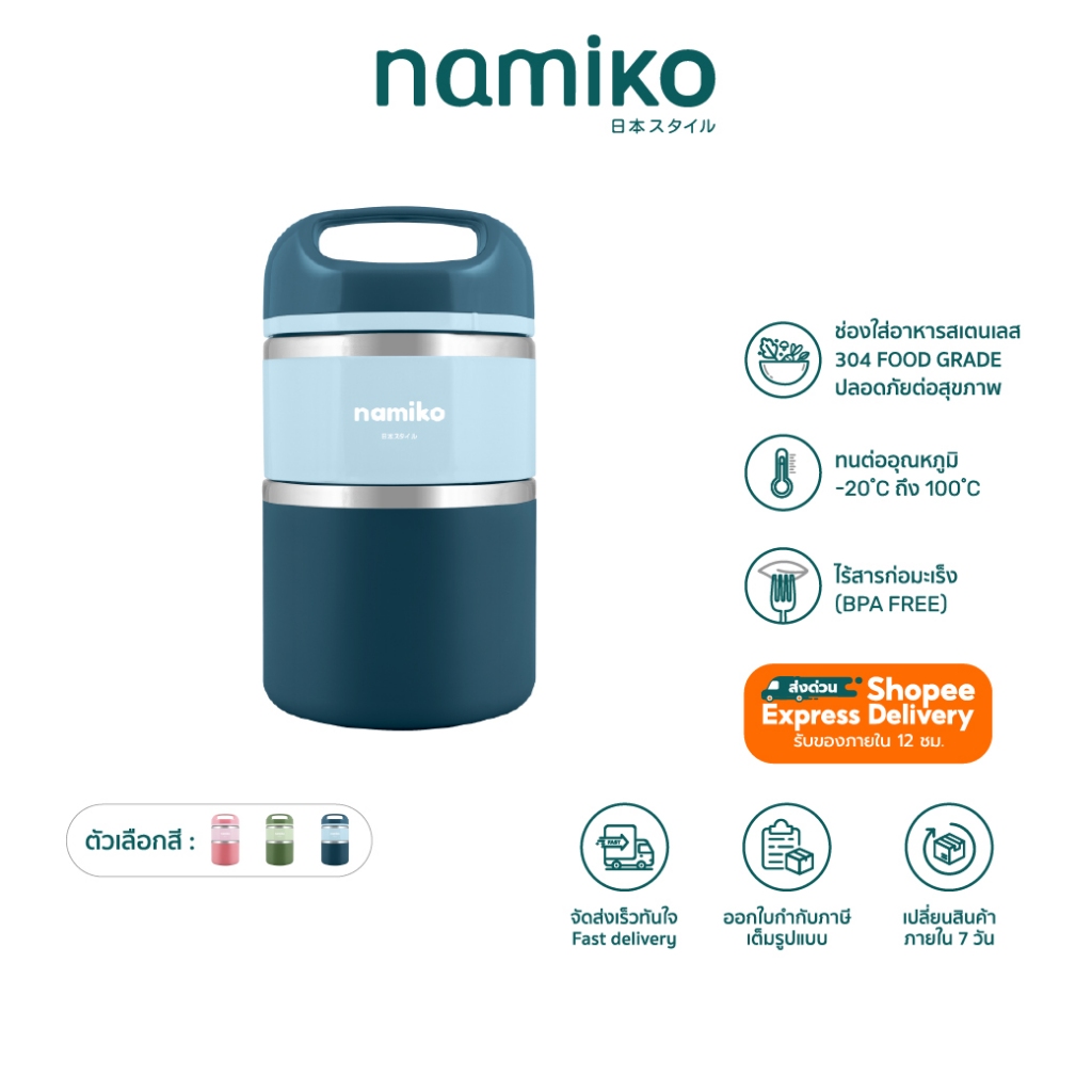 Namiko กระติกสเตนเลสใส่อาหารเก็บอุณหภูมิฝาหิ้ว 1-2 ชั้น (ไม่เป็นสนิม)