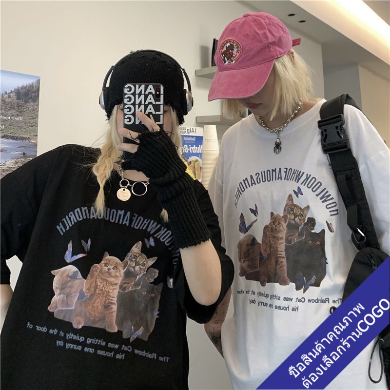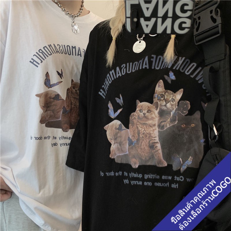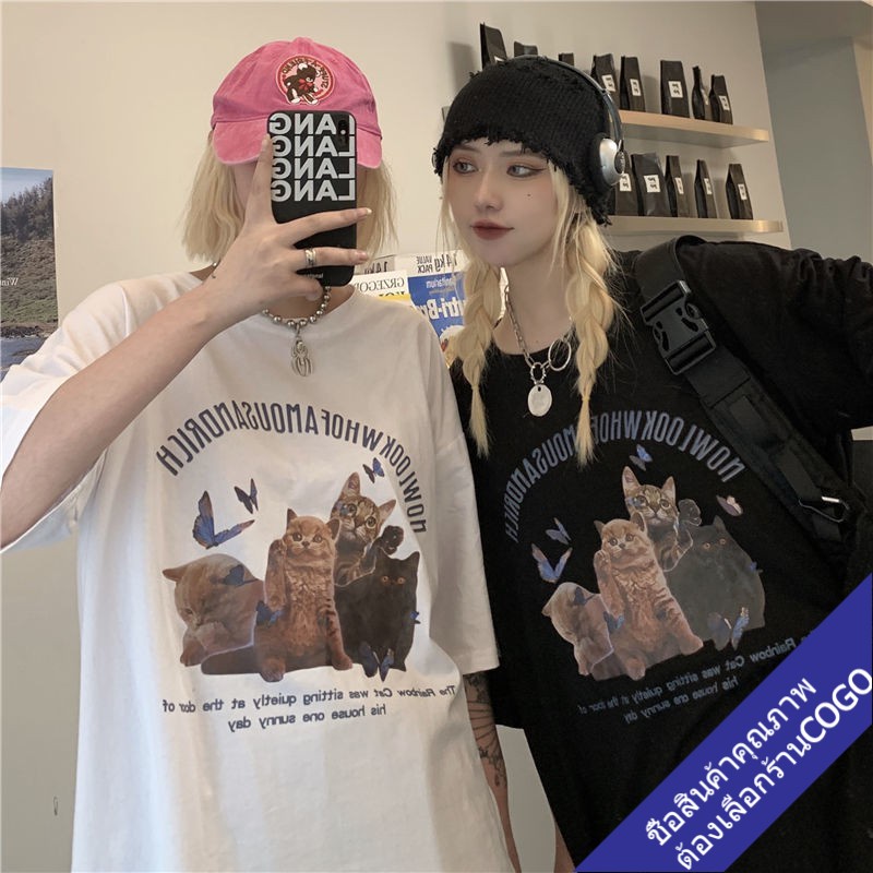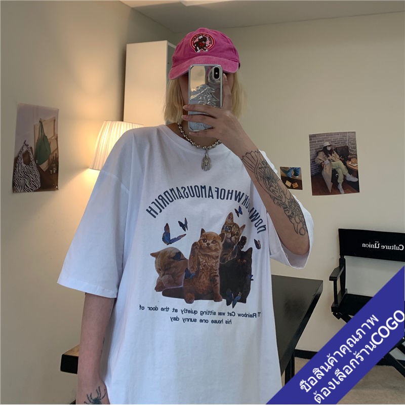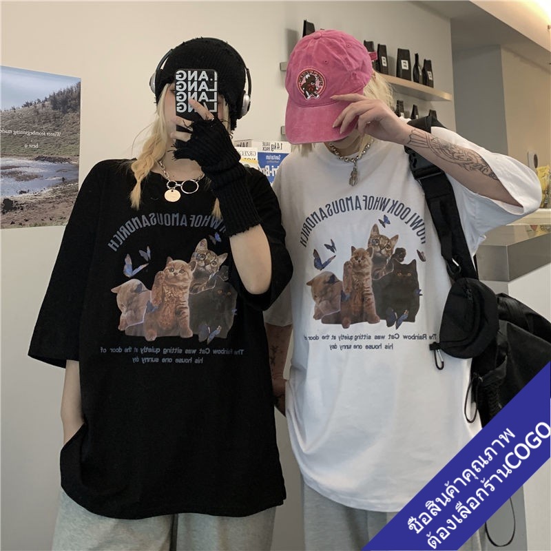 เสื้อคู่รักชายหญิง oversized เสื้อผ้าวัยรุ่นแฟชั่นเกาหลี โอเวอร์ไซส์แขนสั้นสีขาว ลายการ์ตูนน่ารัก xxl