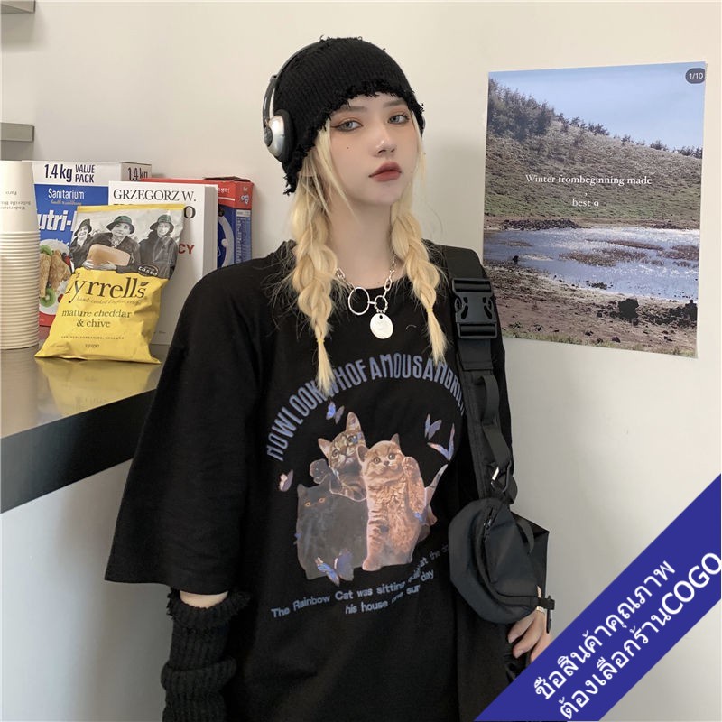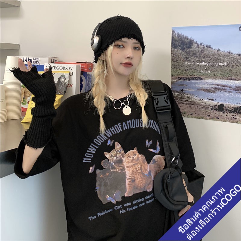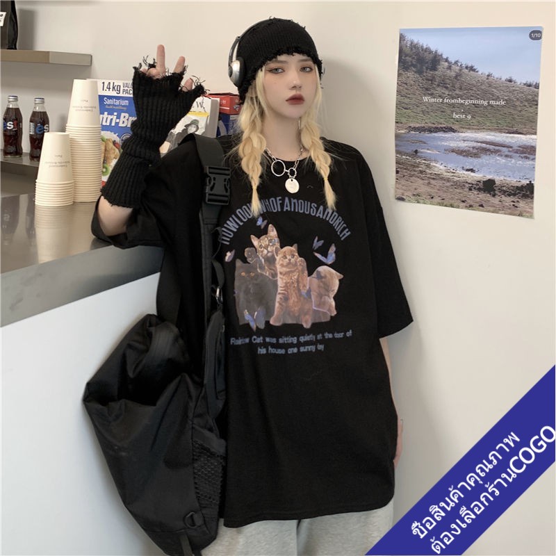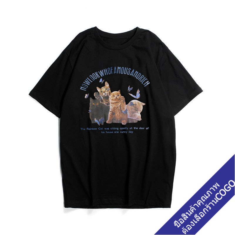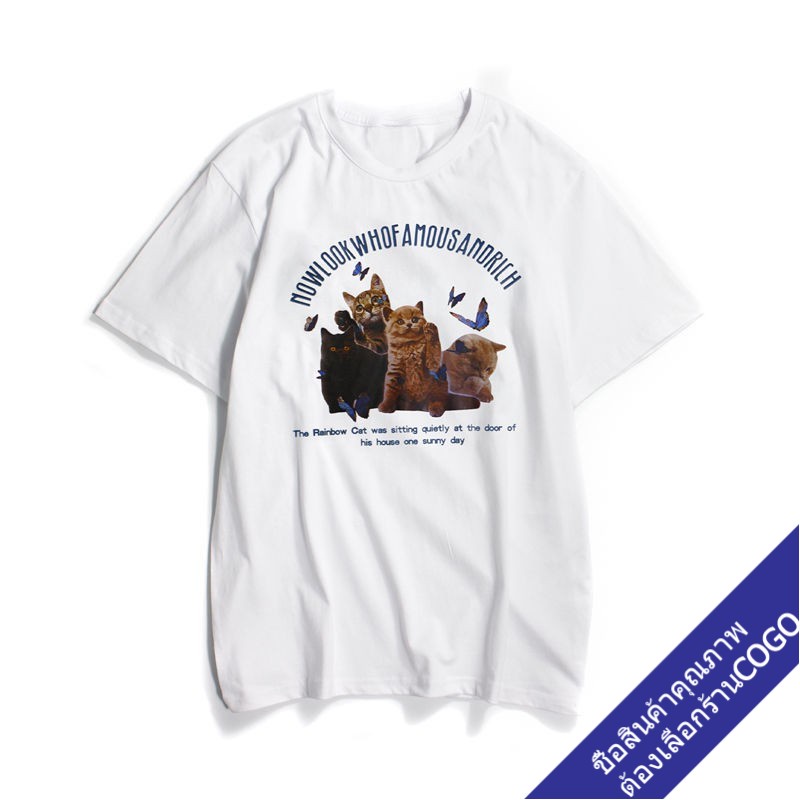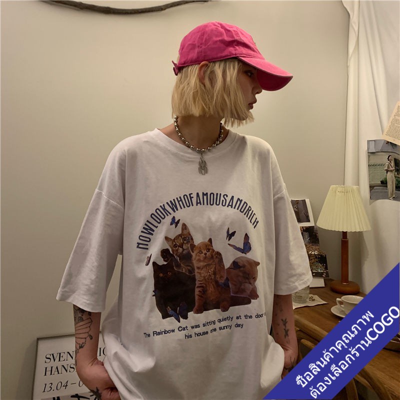 เสื้อคู่รักชายหญิง oversized เสื้อผ้าวัยรุ่นแฟชั่นเกาหลี โอเวอร์ไซส์แขนสั้นสีขาว ลายการ์ตูนน่ารัก xxl