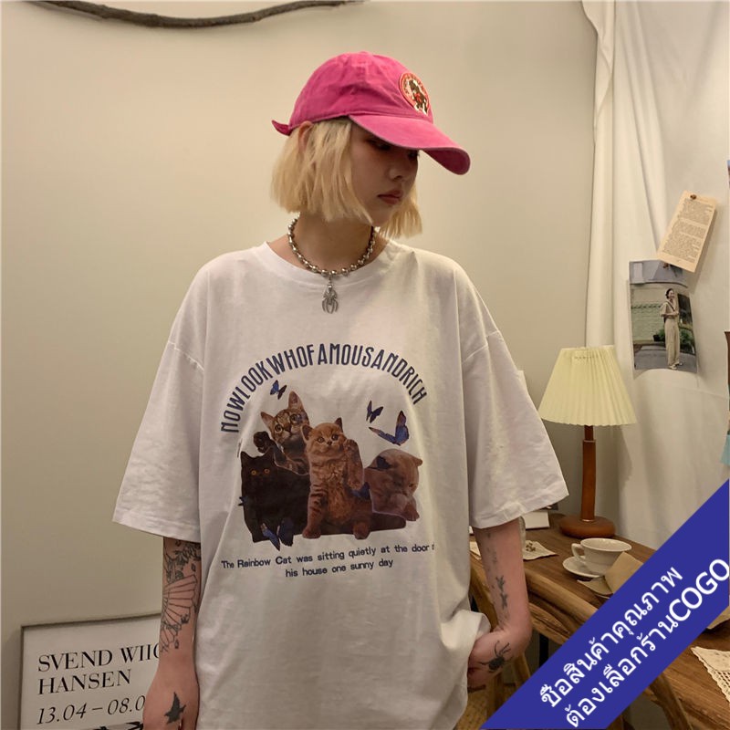 เสื้อคู่กับแฟนน่ารักๆ พิมพ์ลายการ์ตูน oversize เสื้อผ้าแฟชั่นสไตล์เกาหลี เสื้อโอเวอร์ไซส์ผู้หญิง ใส่สบาย XXL