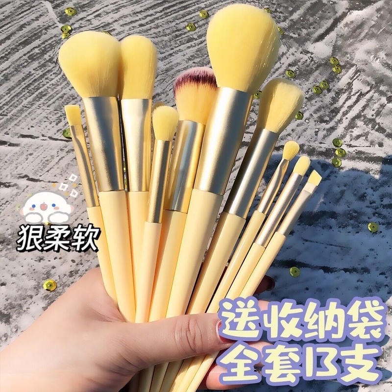 ชุดแปรงแต่งหน้า ขนปุยนุ่ม ธรรมชาติ 13 ชิ้น สําหรับแต่งอายแชโดว์ คอนทัวร์ แป้งผสมรองพื้น คาบูกิ เครื่องมือความงาม