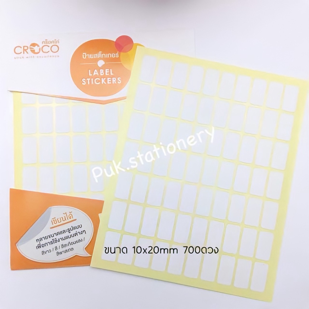 สติ๊กเกอร์กระดาษสีขาว Sticker White (สี่เหลี่ยม) แยกแผ่น ขนาด 10 x 20 mm แผ่นละ 70 ดวง