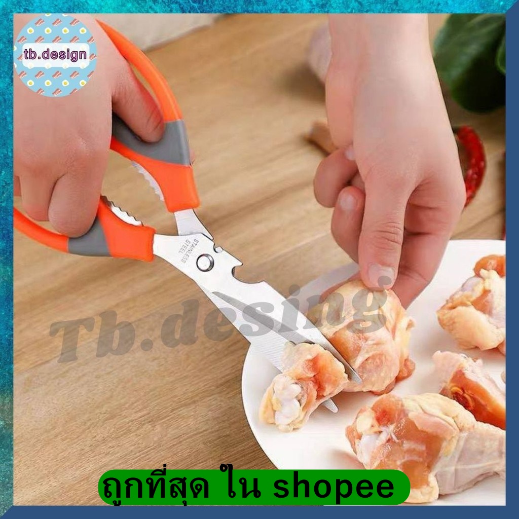 ถูกที่สุด กรรไกรทำอาหาร ทำครัว อเนกประสงค์ สแตนเลส 3in1 #C-0036