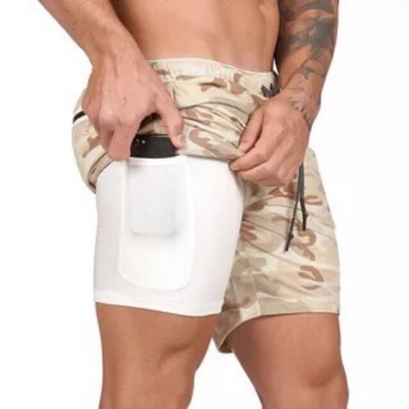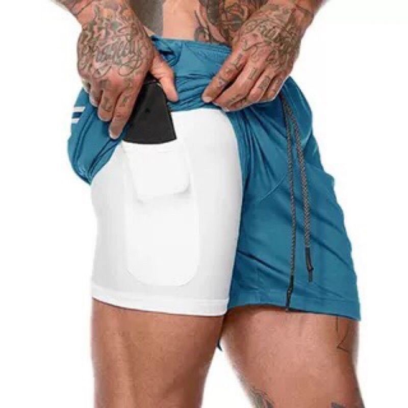 พร้องส่ง กางเกงวิ่งขาสั้น 2 in 1 [มีกระเป๋า2ข้าง] ซับในเนื้อผ้าเย็น กางเกงกีฬาขาสั้น