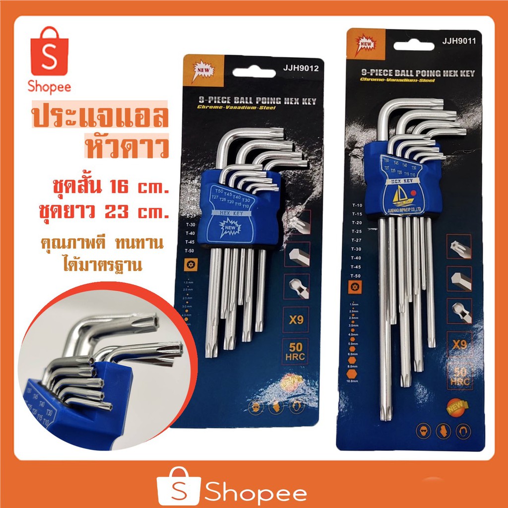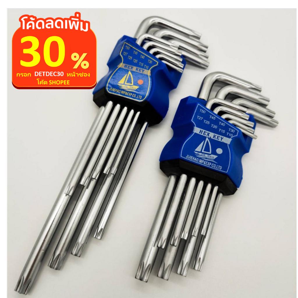 ชุดประแจ แอล หกเหลี่ยม ชุดกุญแจ หกเหลี่ยม เครื่องมือช่าง ยาวพิเศษ 9 ชิ้น หัวตัด หัวบอล และ หัวดาว