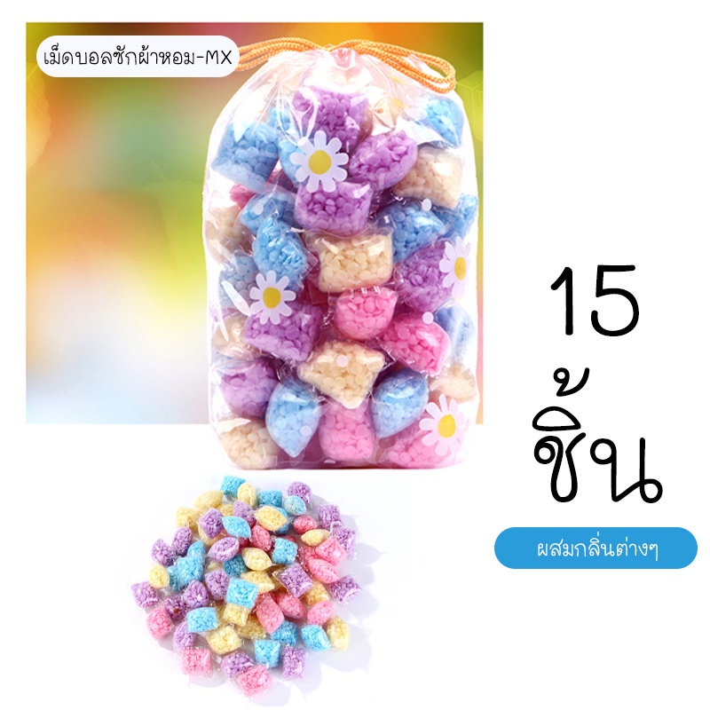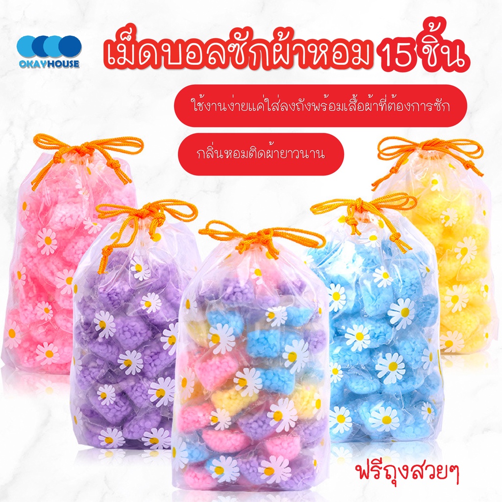 พร้อมส่งokayhouse/ เม็ดบอลซักผ้าหอม (15 ชิ้น) น้ำหอม ปรับผ้านุ่ม น้ำยาซักผ้า หลายกลิ่น