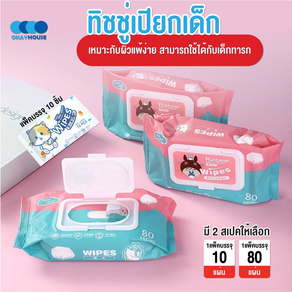 พร้อมส่งokayhouse/ ทิชชู่เปียกเด็ก ทิชชู่เปียกทำความสะอาด กระดาษทิชชู่เปียก ทิชชูเปียก Baby Wipes ผ้านุ่มชุ่มชื่น