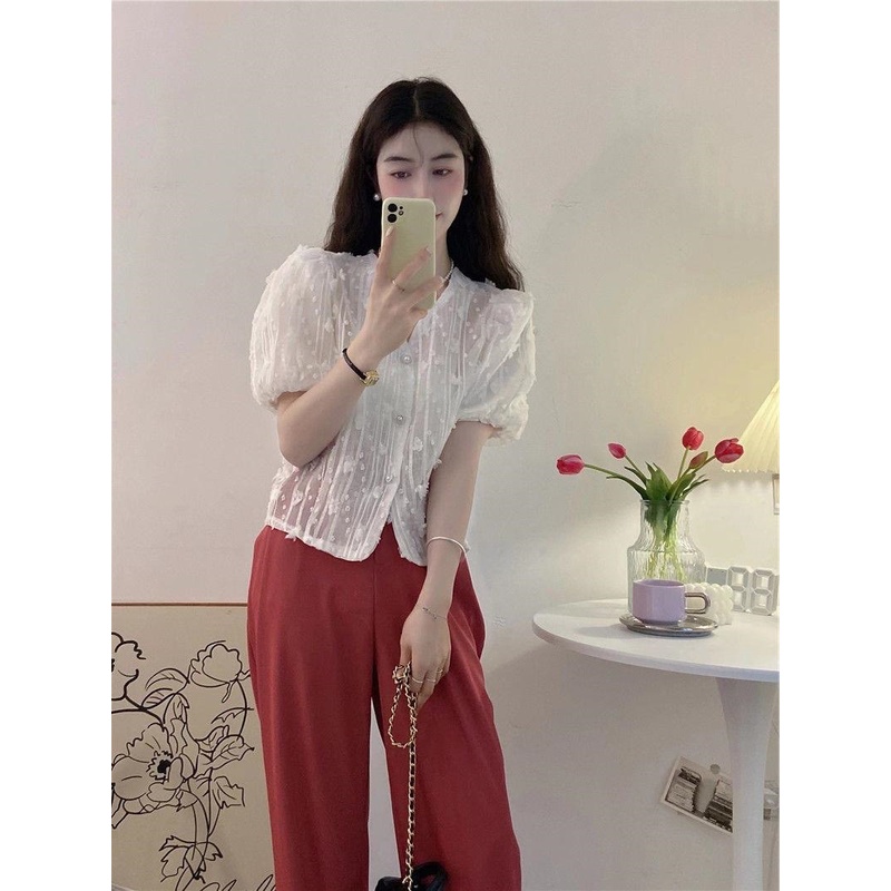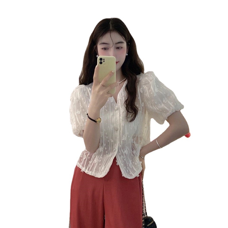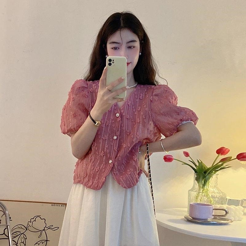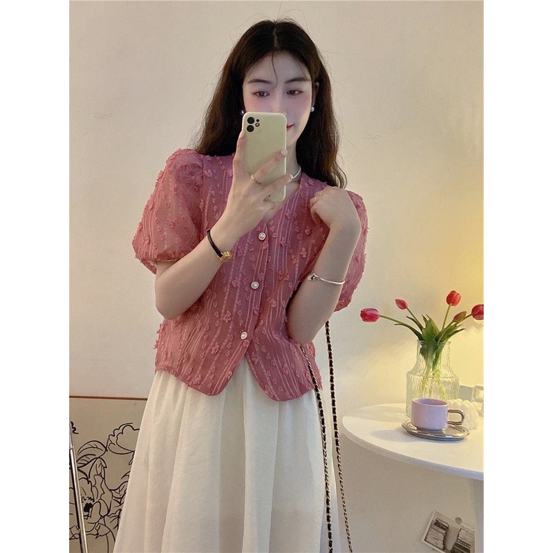𝙁.𝙔 𝙨𝙩𝙪𝙙𝙞𝙤𝙨 🌸 พร้อมส่งจากไทย🌸NO.206 รุ่นใหม่ เสื้อเชิ้ตแขนสั้น คอวี ลายดอกไม้ สไตล์ฝรั่งเศส แฟชั่นฤดูร้อน สําหรับผู้หญิง