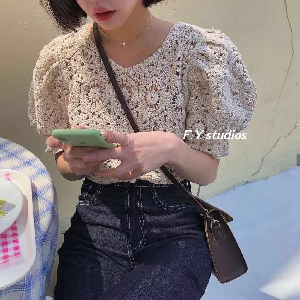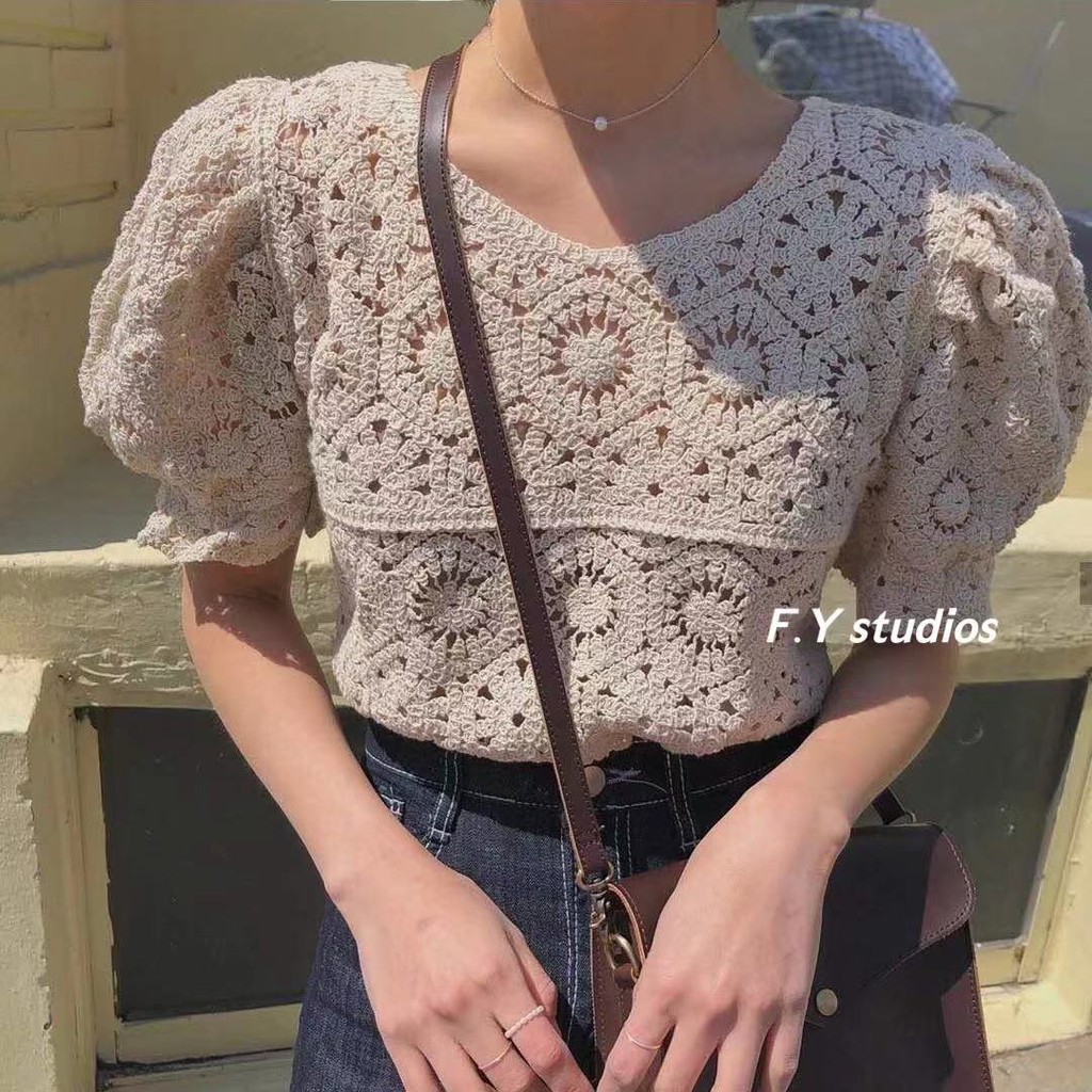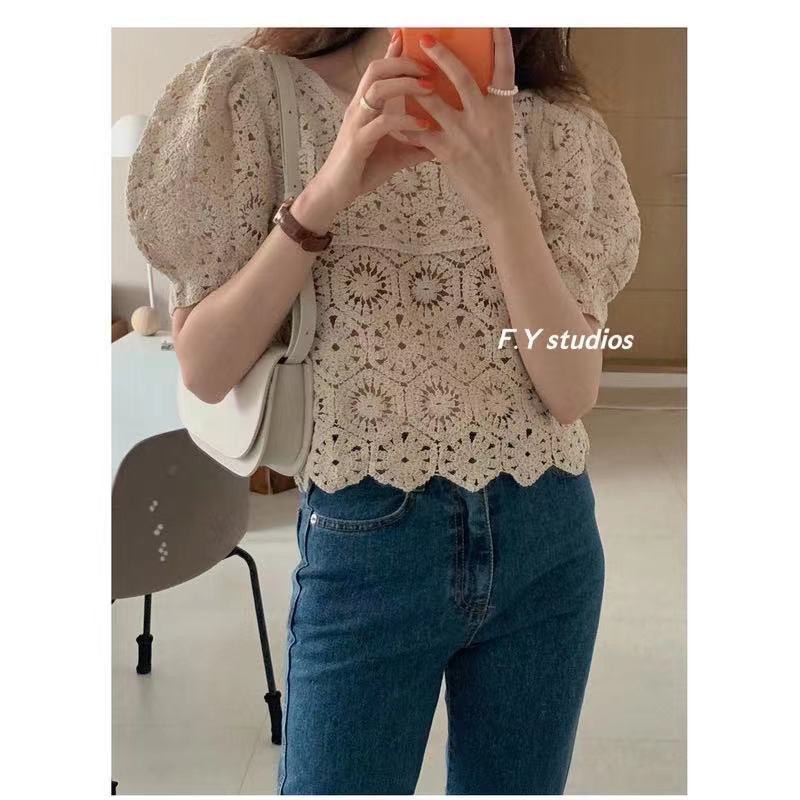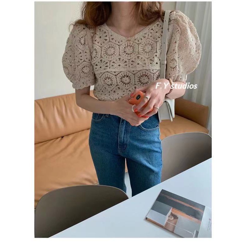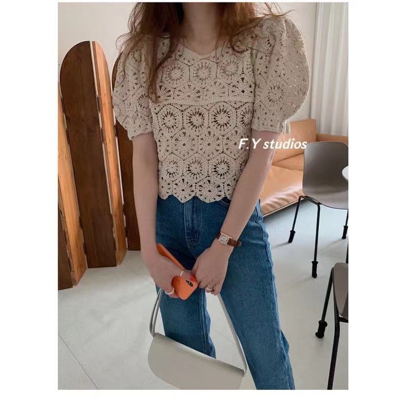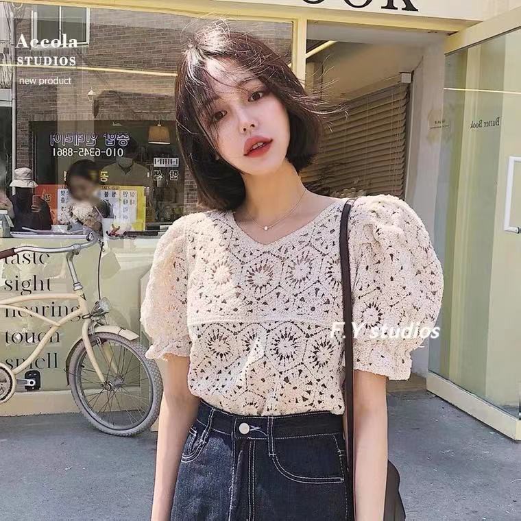 𝙁.𝙔 𝙨𝙩𝙪𝙙𝙞𝙤𝙨 🌟 พร้อมส่ง🌟 NO.106 ☆NEW ARRIVALS ☆เสื้อแขนสั้น ผ้าฉลุ ลายลูกไม้น่ารักๆ สไตล์เกาหลี สําหรับผู้หญิง