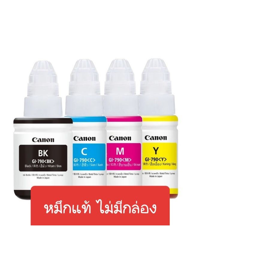 Canon GI-790 NOBOX 4 สี BK/C/M/Y หมึกเติมแท้ ยี่ห้อ แคนนอน รุ่น GI790BCMY