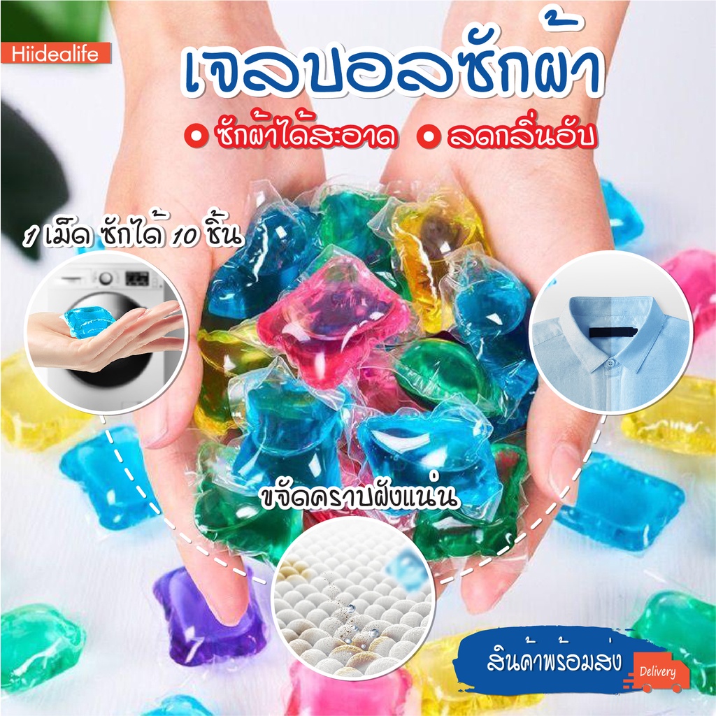 พร้อมส่ง/ Hiidealife/เจลบอลซักผ้าา เม็ดบอล รวมน้ำยาซัก + น้ำยาปรับผ้านุ่ม ไว้ในก้อนเดียว