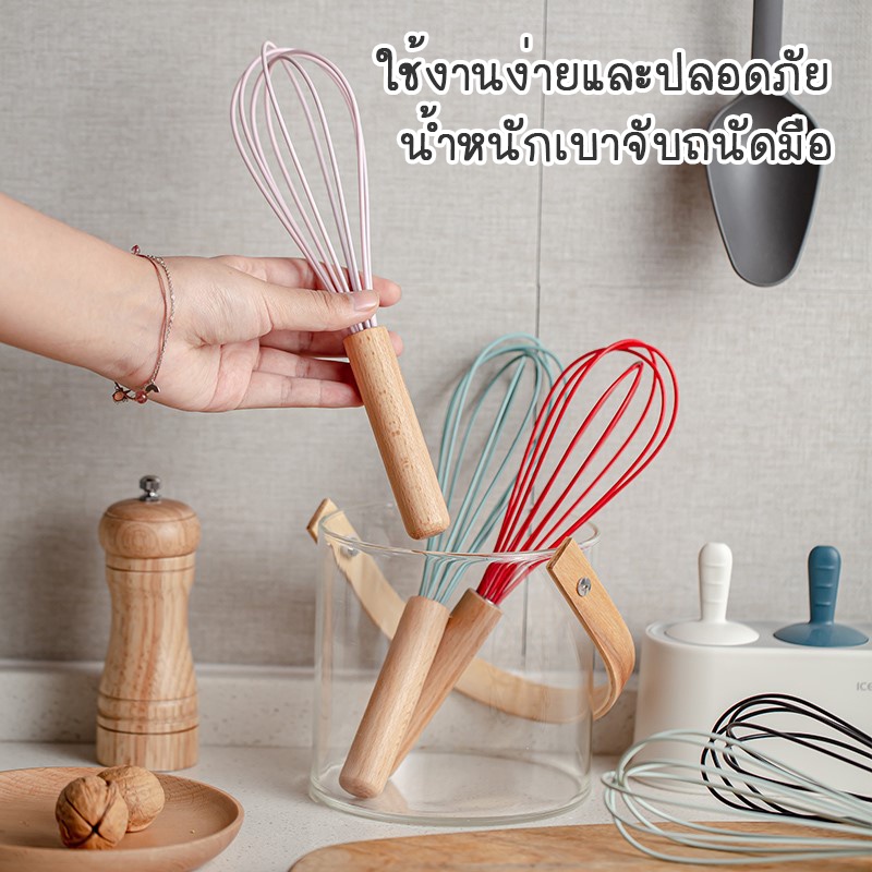 พร้อมส่ง/ ตะกร้อตีมือ ตะกร้อตีไข่ ตะกร้อตีแป้ง พร้อมด้ามจับไม้มีน้ำหนักเบา มีให้เลือกซื้อ 4 สี