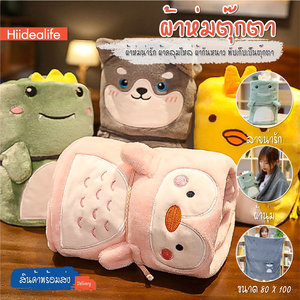 สินค้าพร้อมส่ง/hiidealife/ ผ้าห่ม น่ารัก คลุมไหล่ กันหนาว พับเก็บเป็นตุ๊กตา ตุ๊กตาผ้าหุ่ม