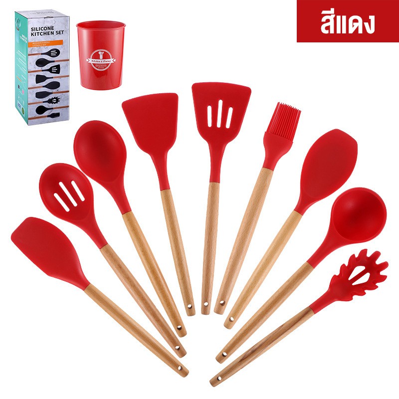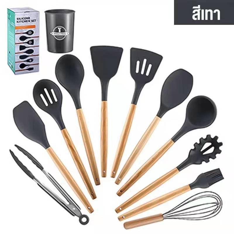 พร้อมส่งHiidealife /ชุดเครื่องครัว11ชิ้น/ กระบวย ทัพพีตักข้าว ตะหลิว ที่ตัก ที่คีบซิลิโคน ตะหลิวชุดทำอาหาร
