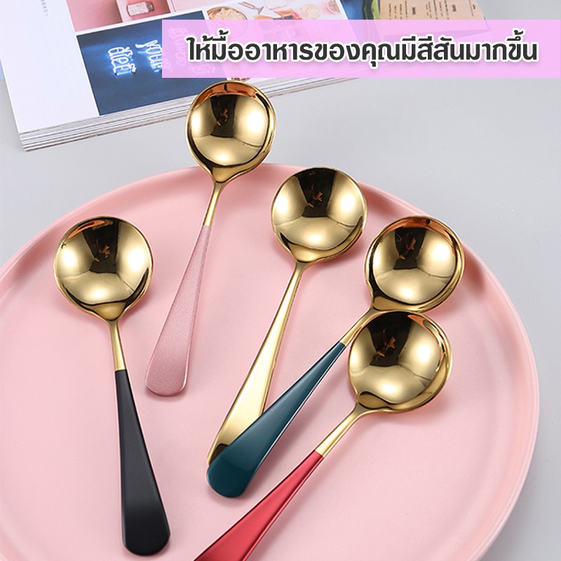 สินค้าพร้อมส่ง/Hiidealife/ช้อนสแตนเลส อย่างหนา ช้อนกินข้าว ผลิตจากวัสดุ สแตนเลส ช้อนกลม ช้อนซุป ช้อนเกาหลี