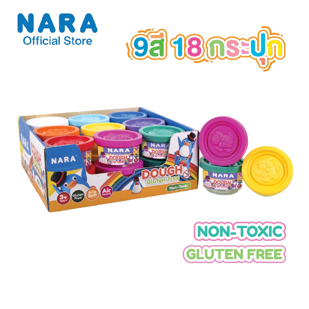 NARA Dough Set (Gluten Free) เซ็ทแป้งโดว์ไร้สารพิษเเละกลูเต็น 9 สี 18 กระปุก บรรจุในกล่องดิสเพลย์