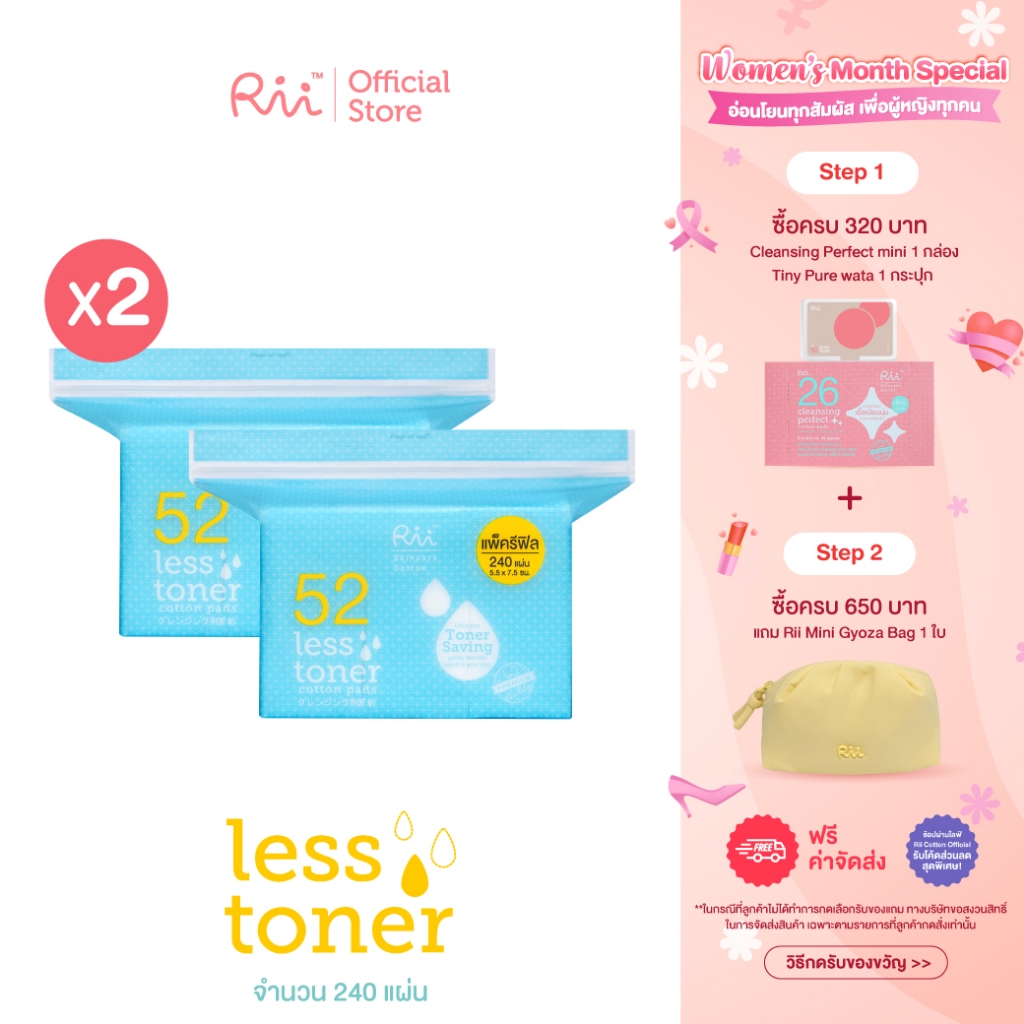 (แพ็คคู่) Rii 52 Less Toner Cotton Pad 240 Pcs (Refill)