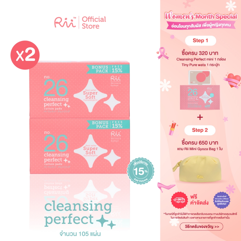 (แพ็คคู่) Rii 26 Cleansing Perfect Cotton Pads 105 Pcs