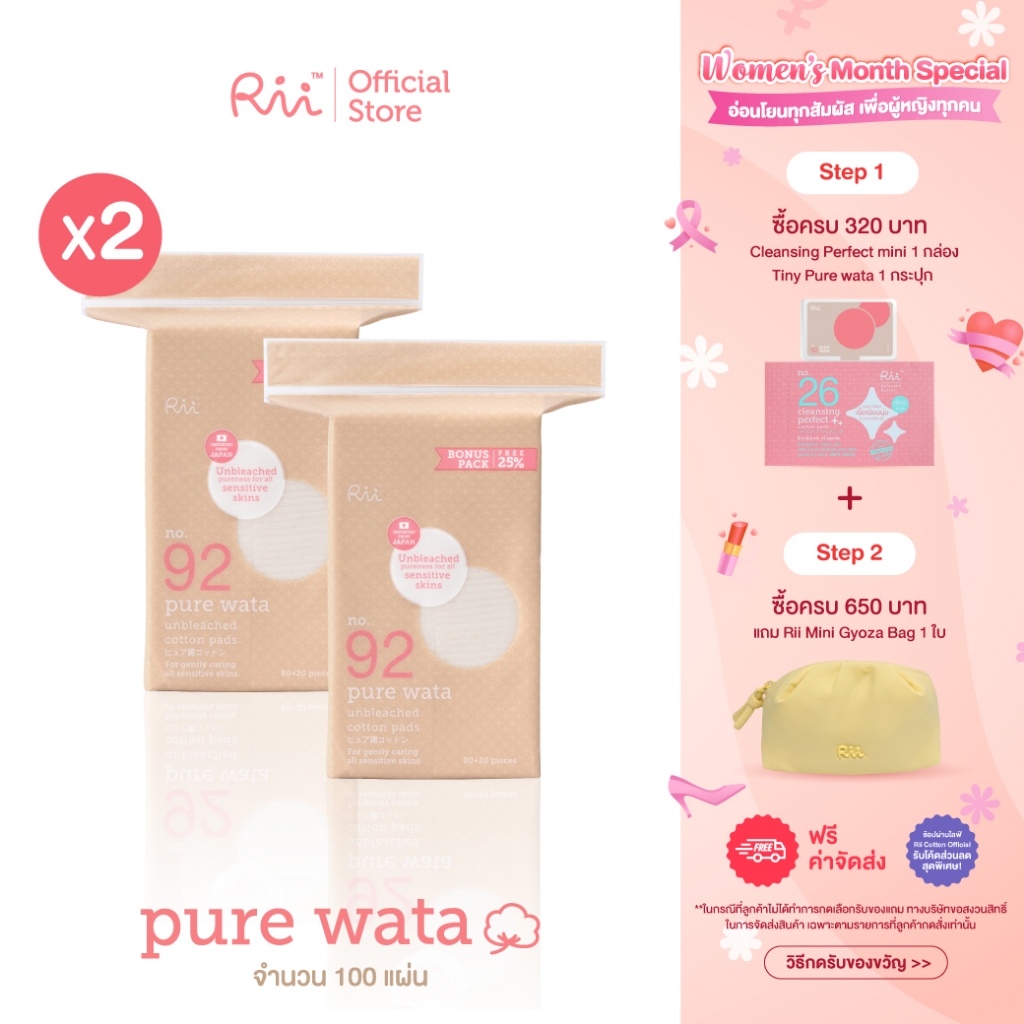(แพ็คคู่) Rii Pure Wata Unbleached Cotton pads