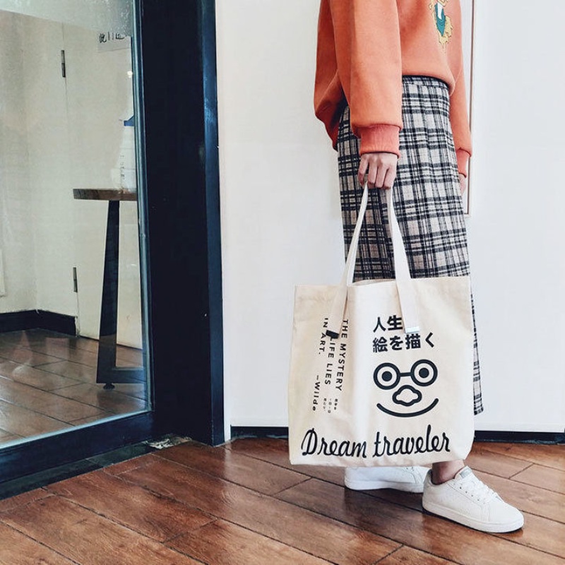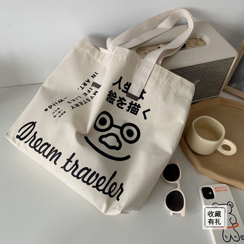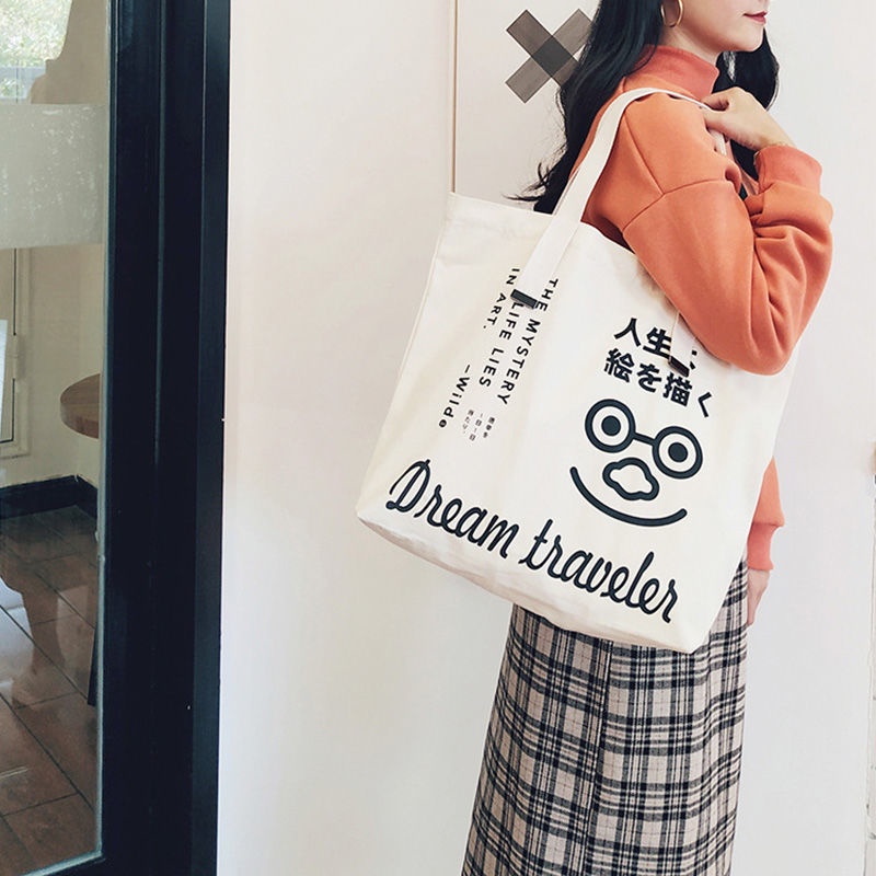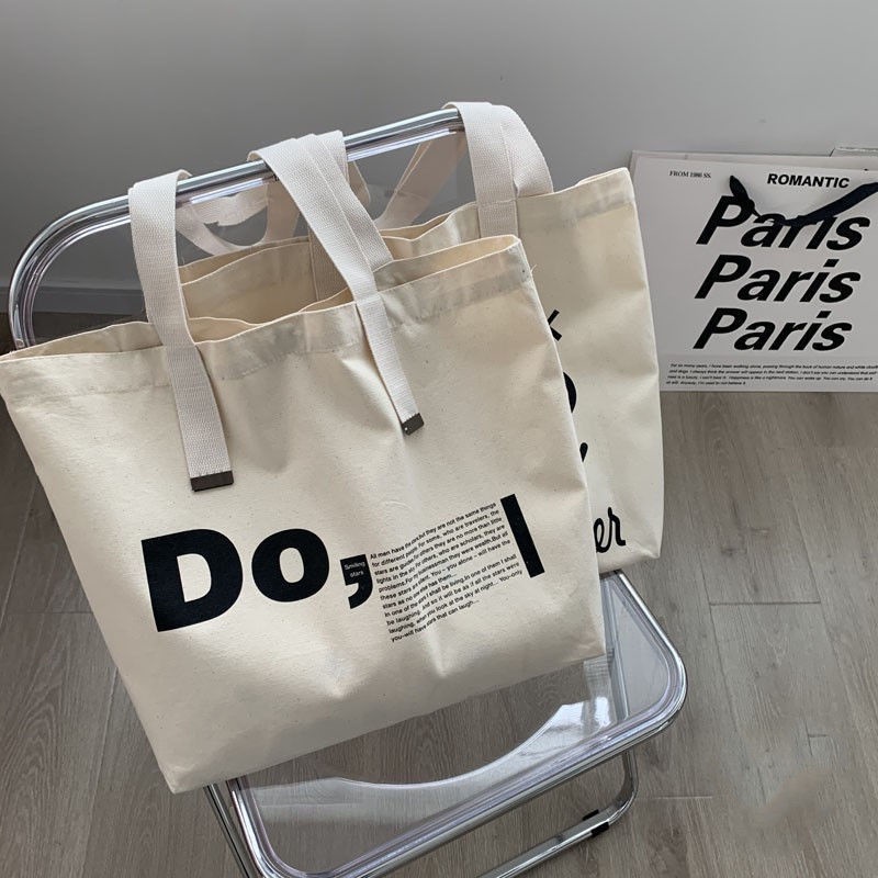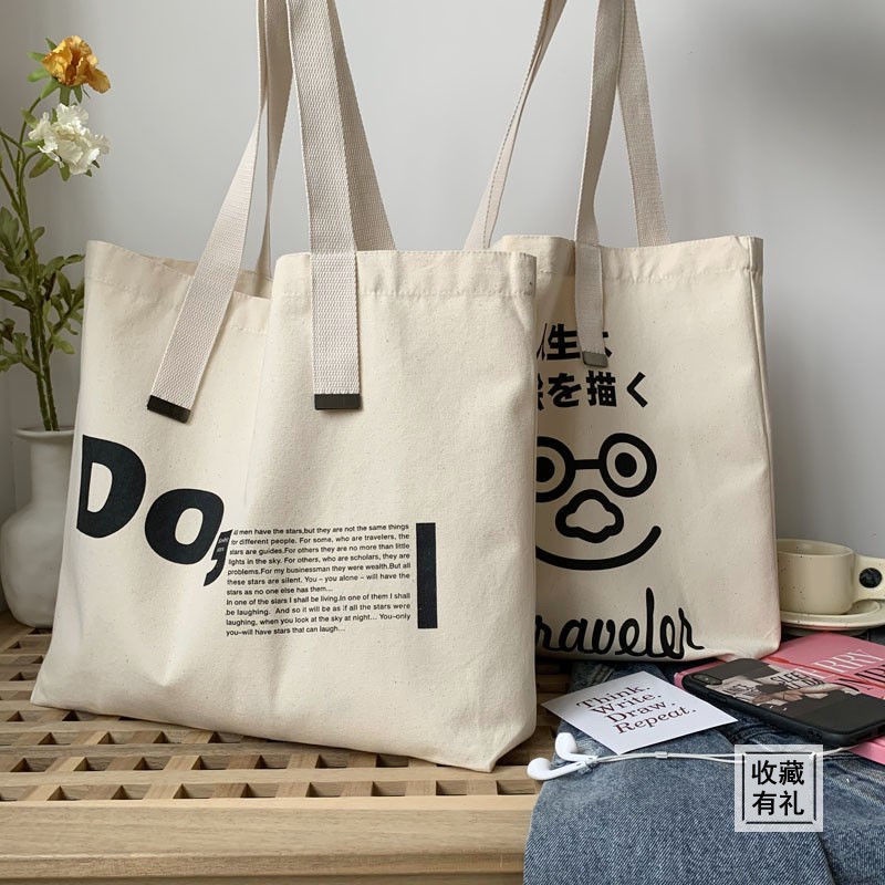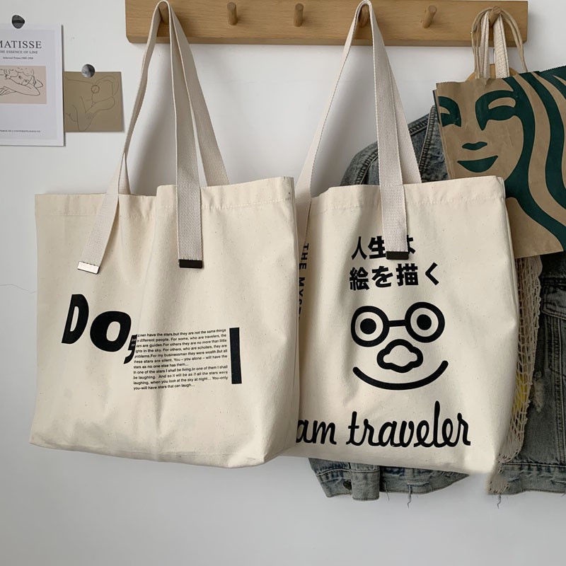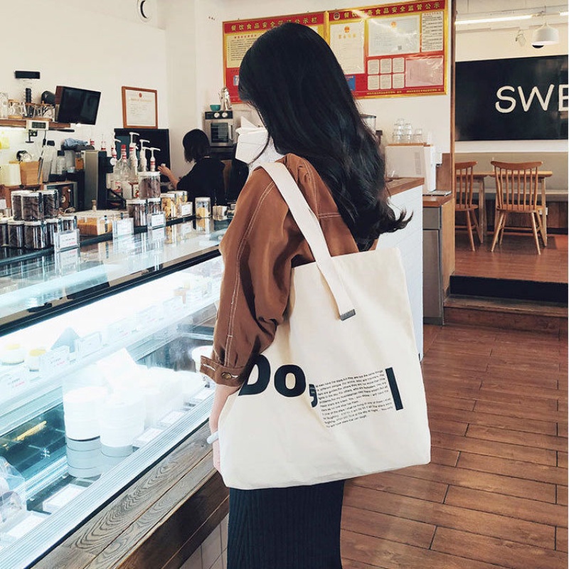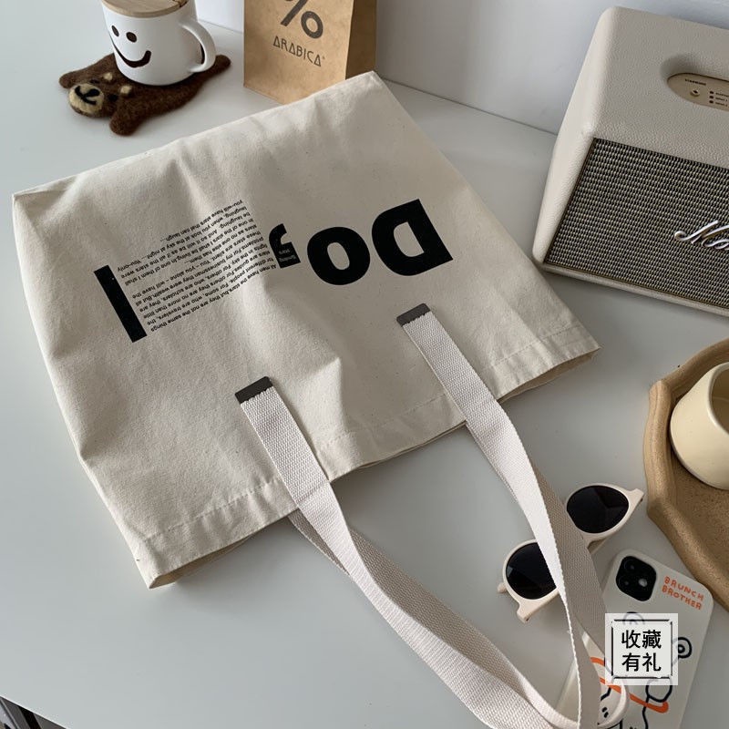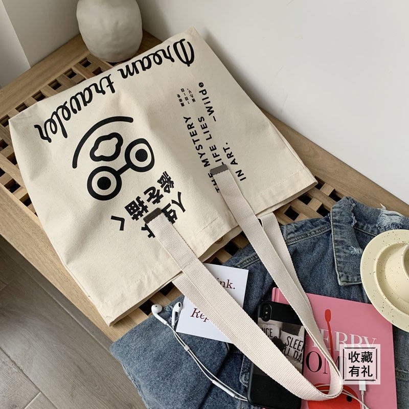 【ซิป + กระเป๋าด้านใน】กระเป๋าสะพายไหล่ลําลอง ผ้าแคนวาส ขนาดใหญ่ จุของได้เยอะ ลายตัวอักษร สไตล์เกาหลี แฟชั่นสําหรับสตรี และนักเรียน