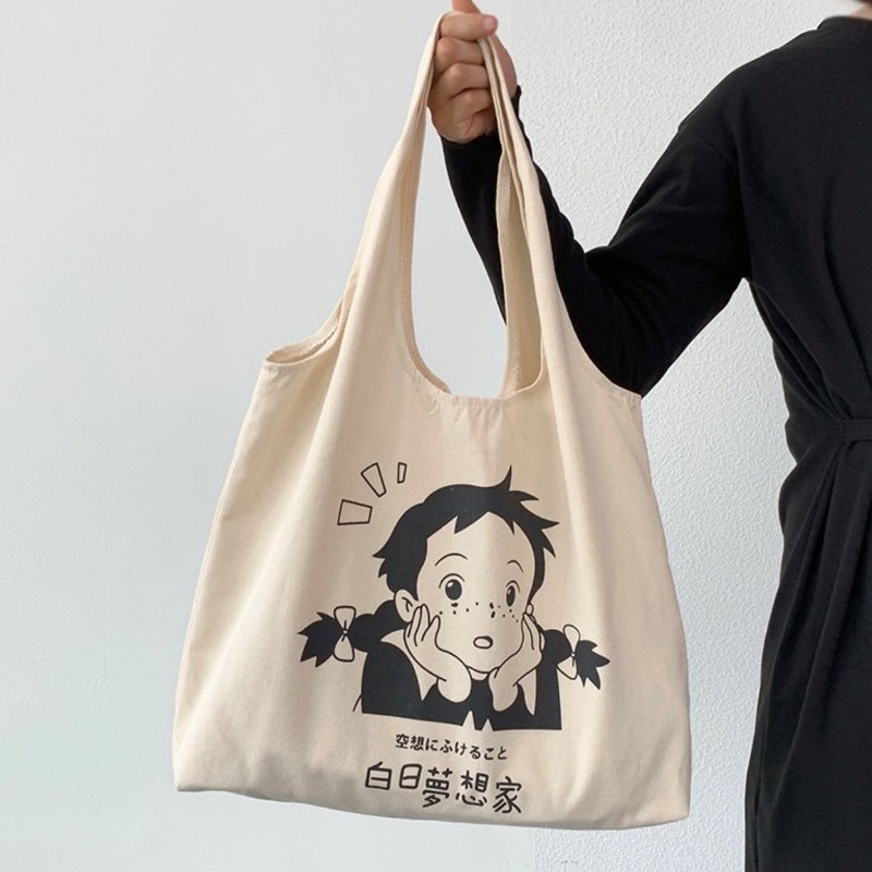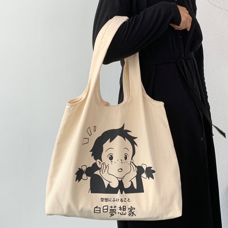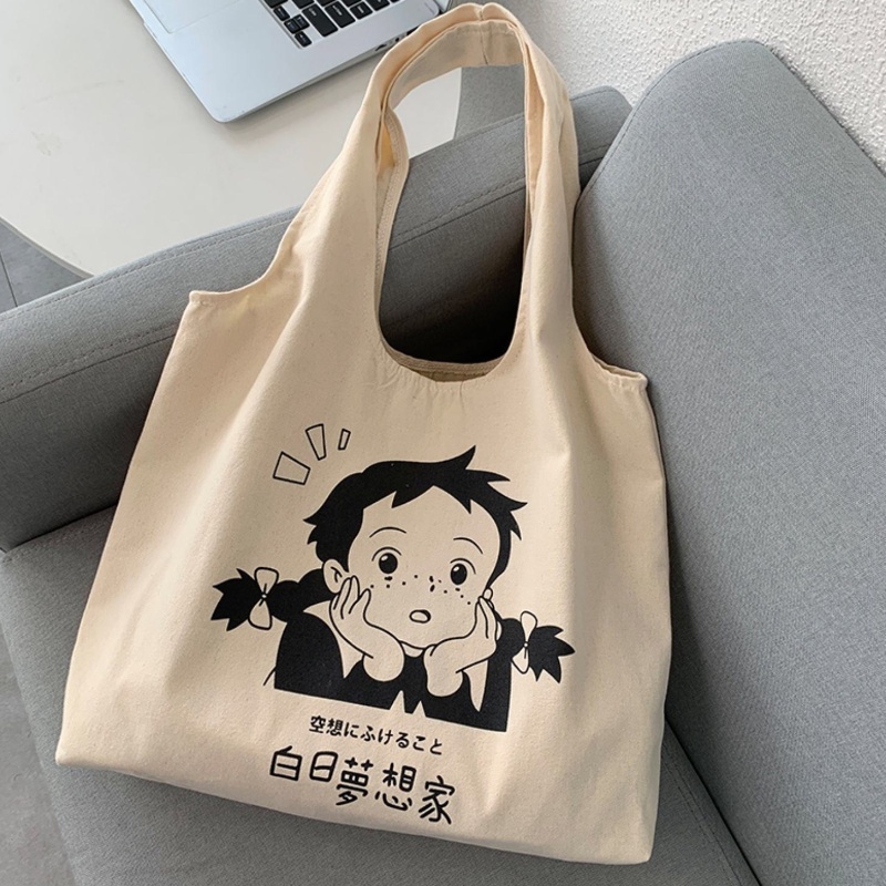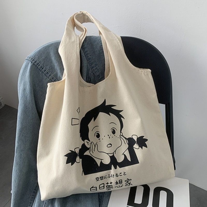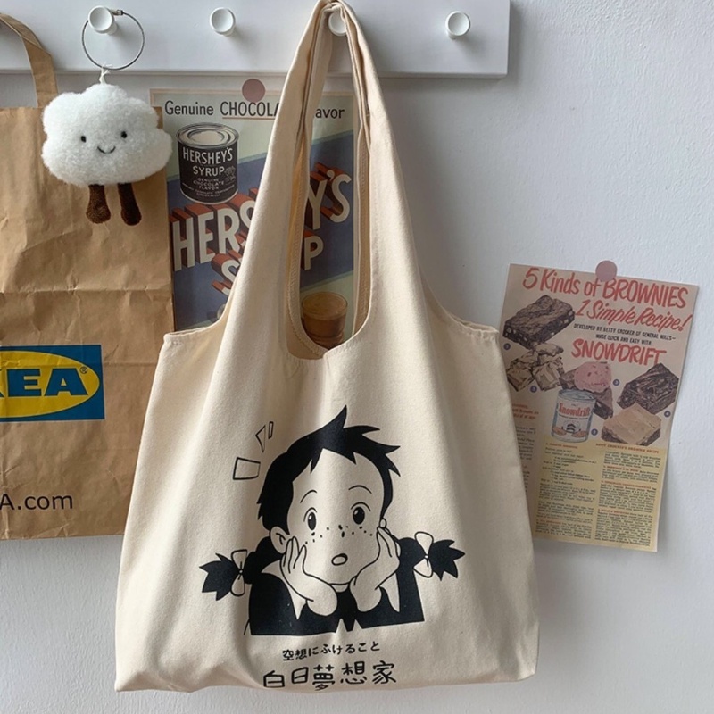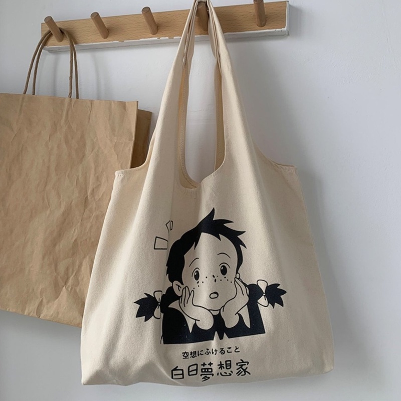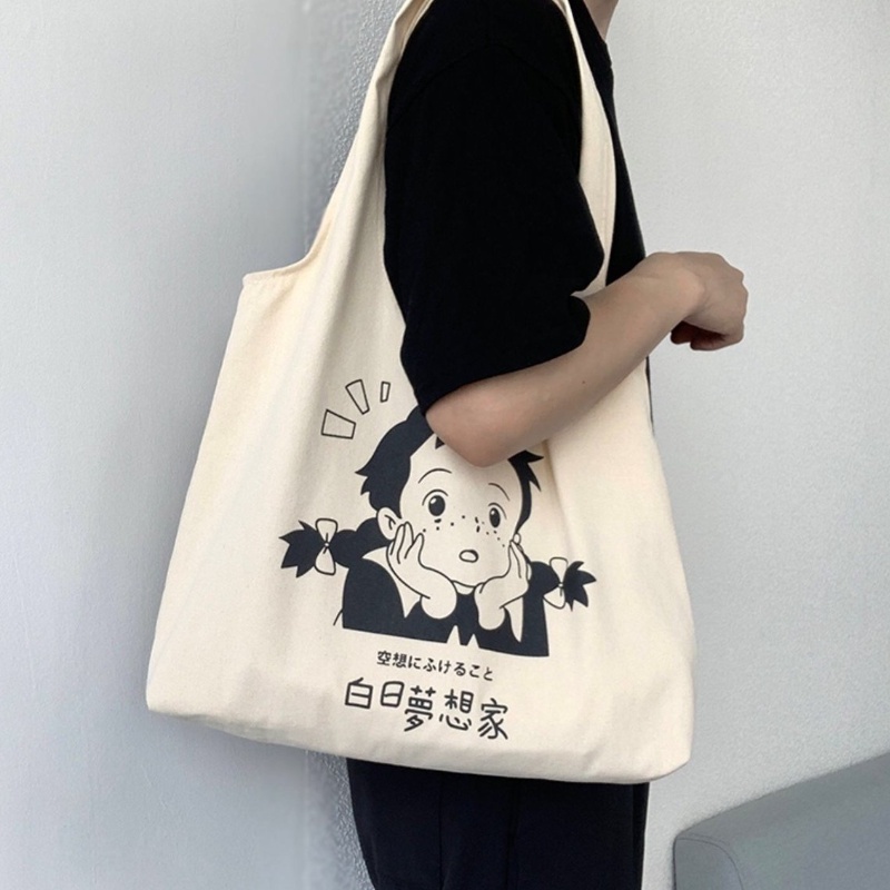 ใหม่ กระเป๋าถือ กระเป๋าสะพายไหล่ ผ้าแคนวาส ขนาดใหญ่ จุของได้เยอะ สําหรับสตรี และนักเร ียน