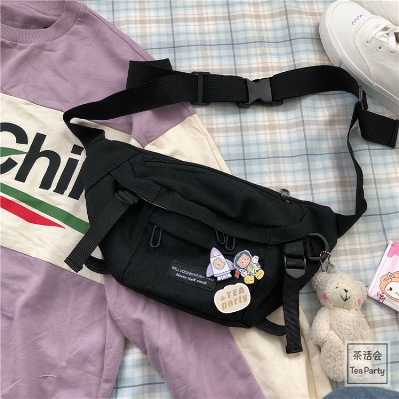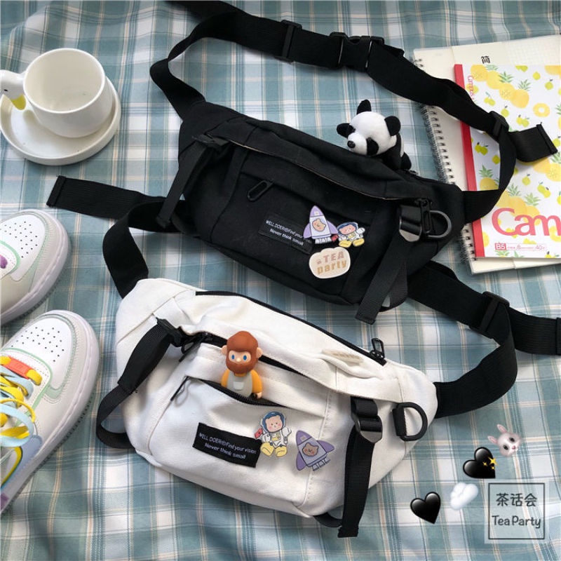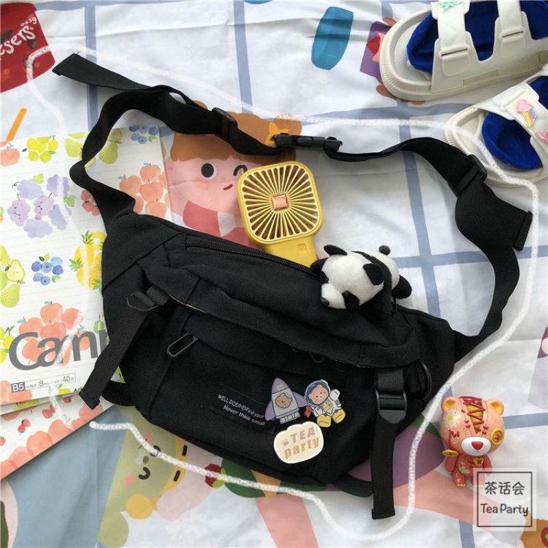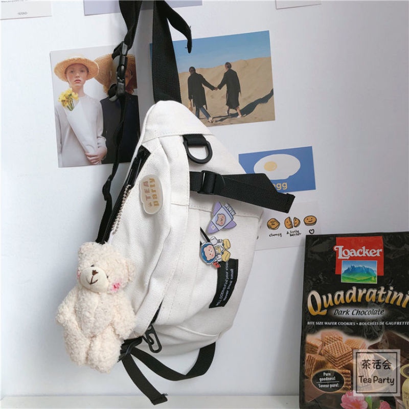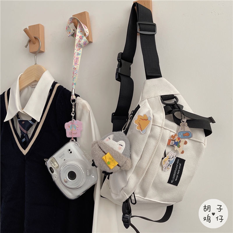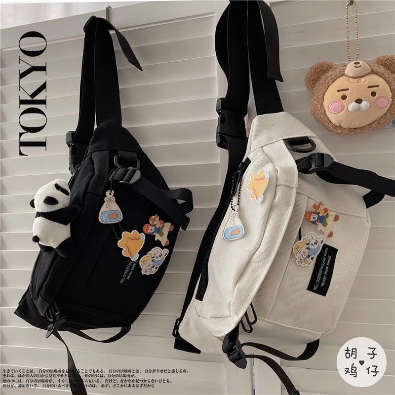 กระเป๋าคาดอก ผ้าแคนวาส ขนาดใหญ่ จุของได้เยอะ สไตล์เกาหลี ญี่ปุ่น ฮาราจูกุ สําหรับผู้ชาย และผู้หญิง