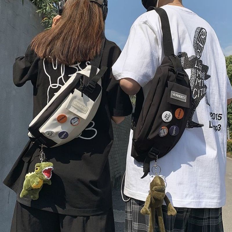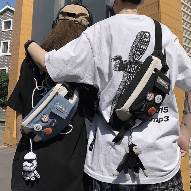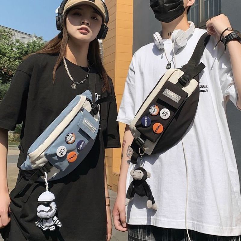 แฟชั่นสีใหม่บล็อกกระเป๋าไหล่ของผู้หญิงเวอร์ชั่นเกาหลีที่ทันสมัยสบายๆ หลากหลายหน้าอกไนลอนน้ำหนักเบา