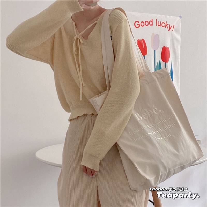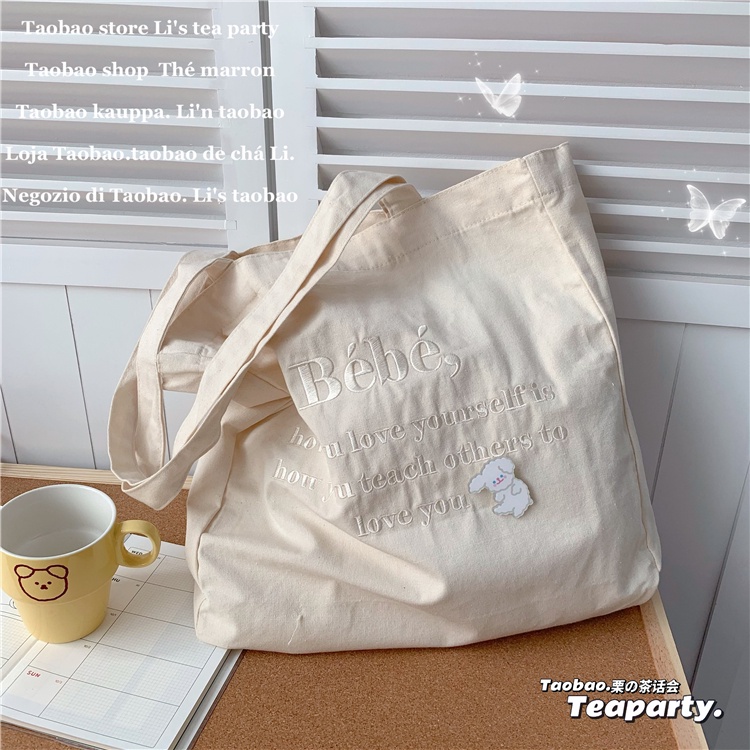 กระเป๋าสะพายไหล่ กระเป๋าช้อปปิ้ง ผ้าแคนวาส แบบนิ่ม ขนาดเล็ก สไตล์เกาหลี และญี่ปุ่น สําหรับผู้หญิง