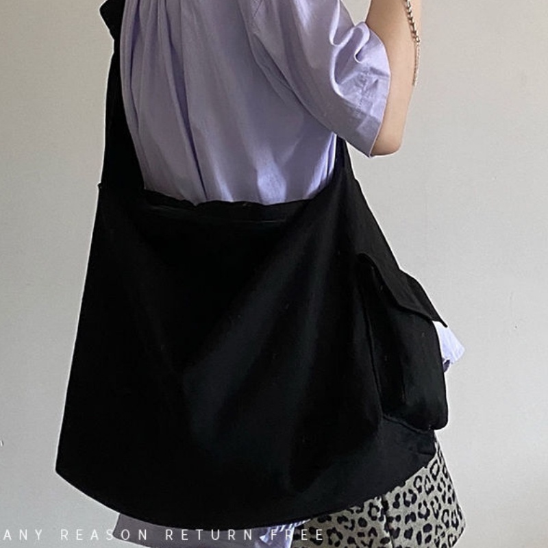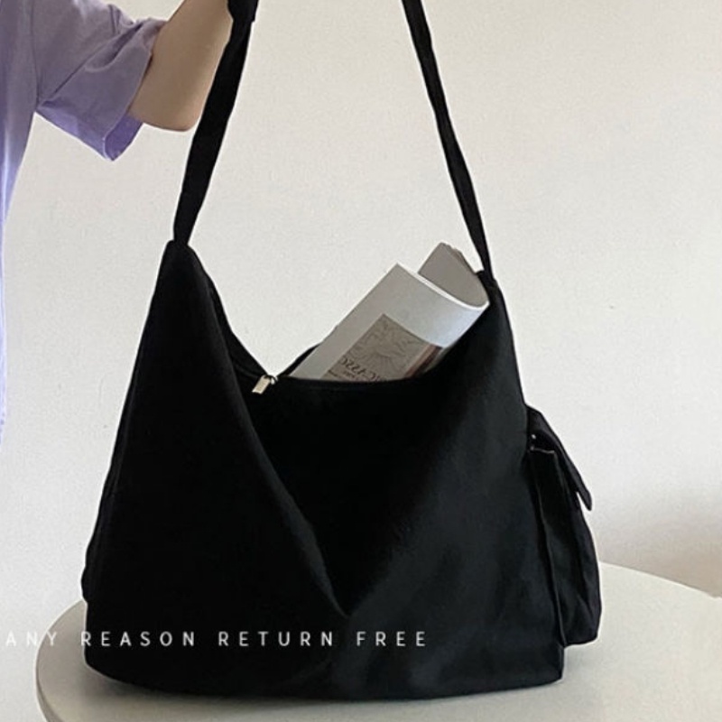 กระเป๋าสะพายไหล่ กระเป๋าถือ ผ้าแคนวาส ขนาดใหญ่ จุของได้เยอะ สไตล์เกาหลี สําหรับสตรี และนักเรียน