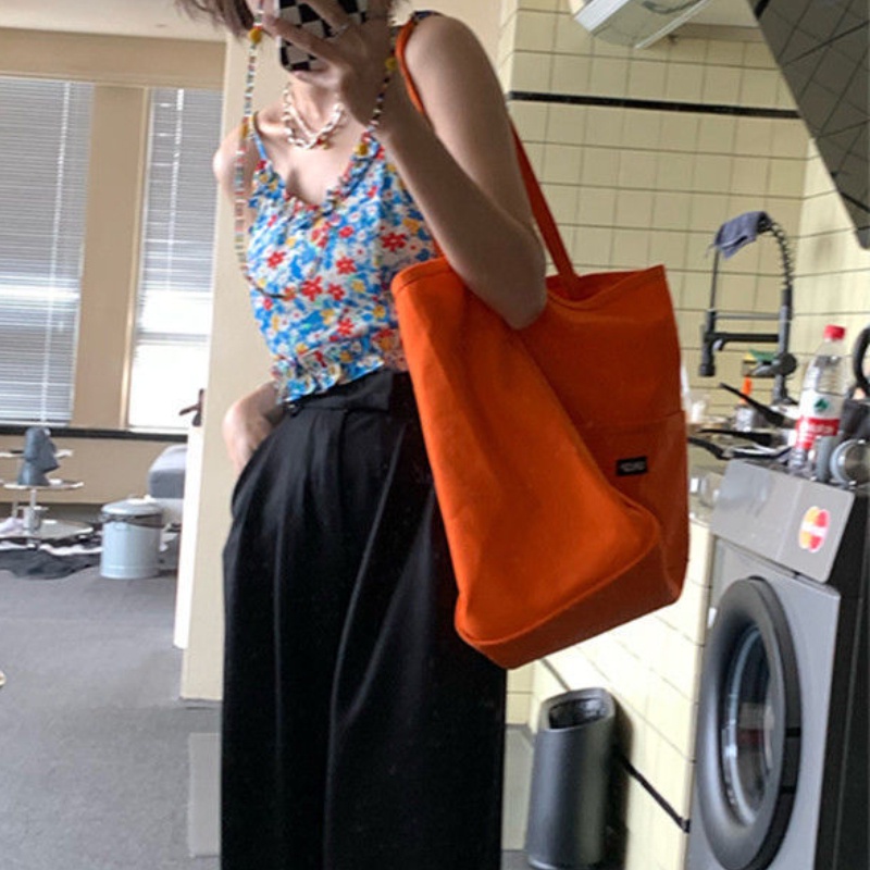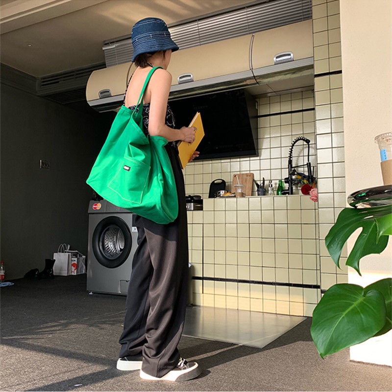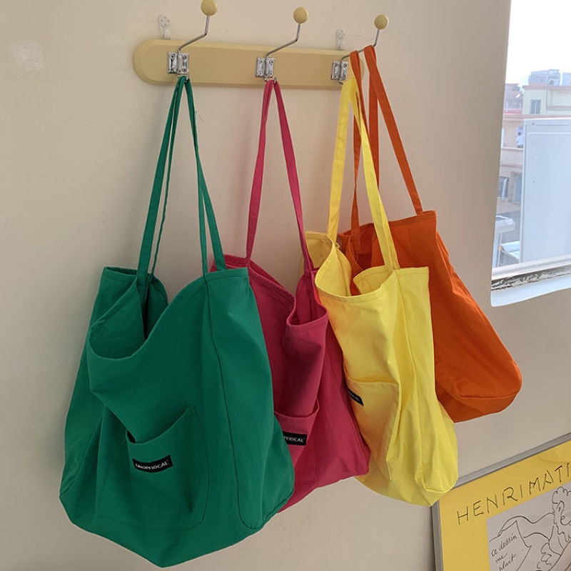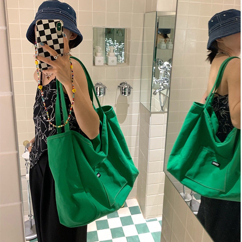 กระเป๋าสะพายไหล่ ผ้าแคนวาส ขนาดใหญ่ จุของได้เยอะ แบบเรียบง่าย สําหรับนักเรียนหญิง