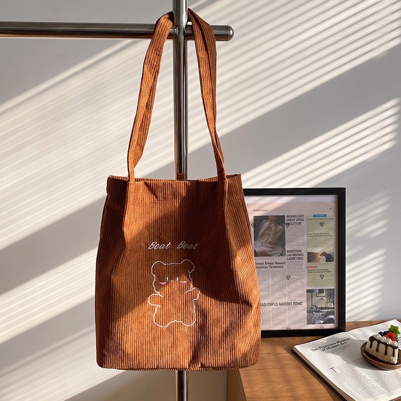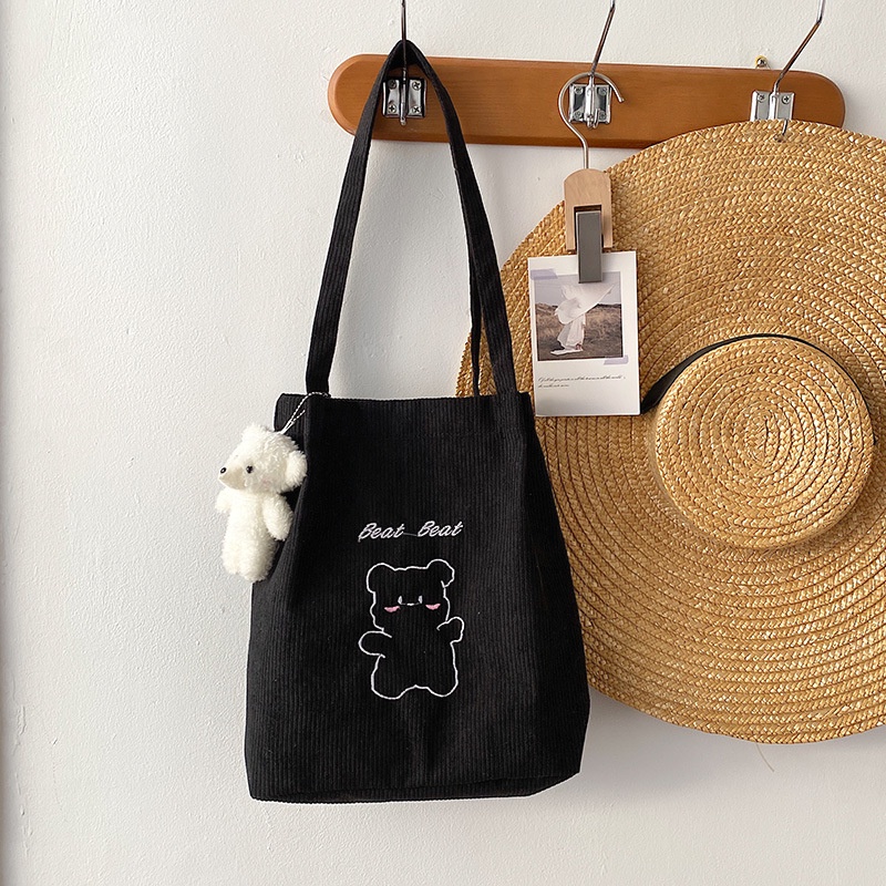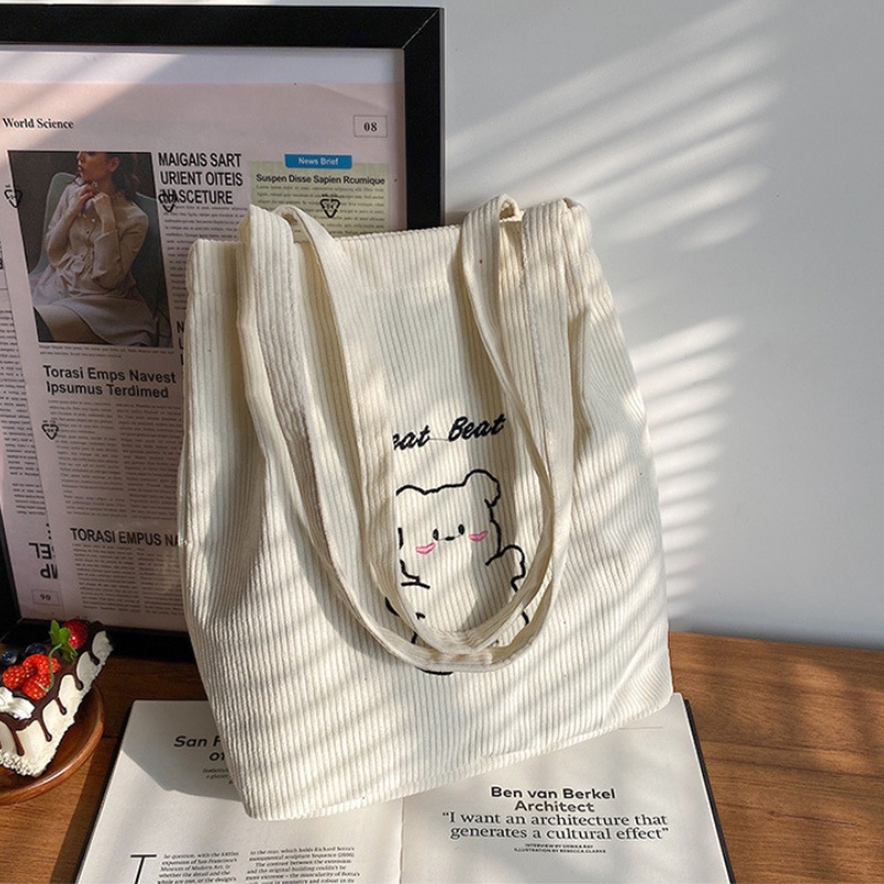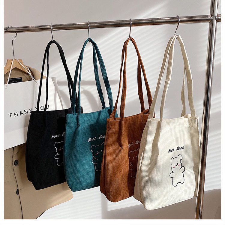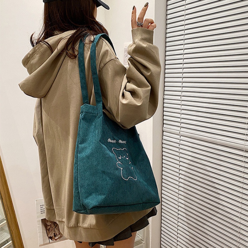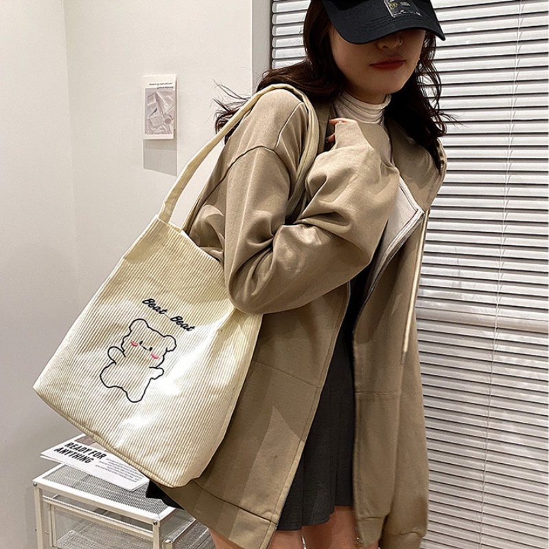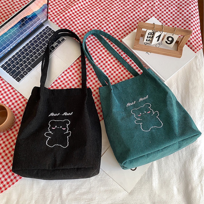 กระเป๋าถือ กระเป๋าสะพายไหล่ ผ้าแคนวาส ปักลายการ์ตูนน่ารัก สไตล์ญี่ปุ่น สําหรับสตรี และนักเรียน