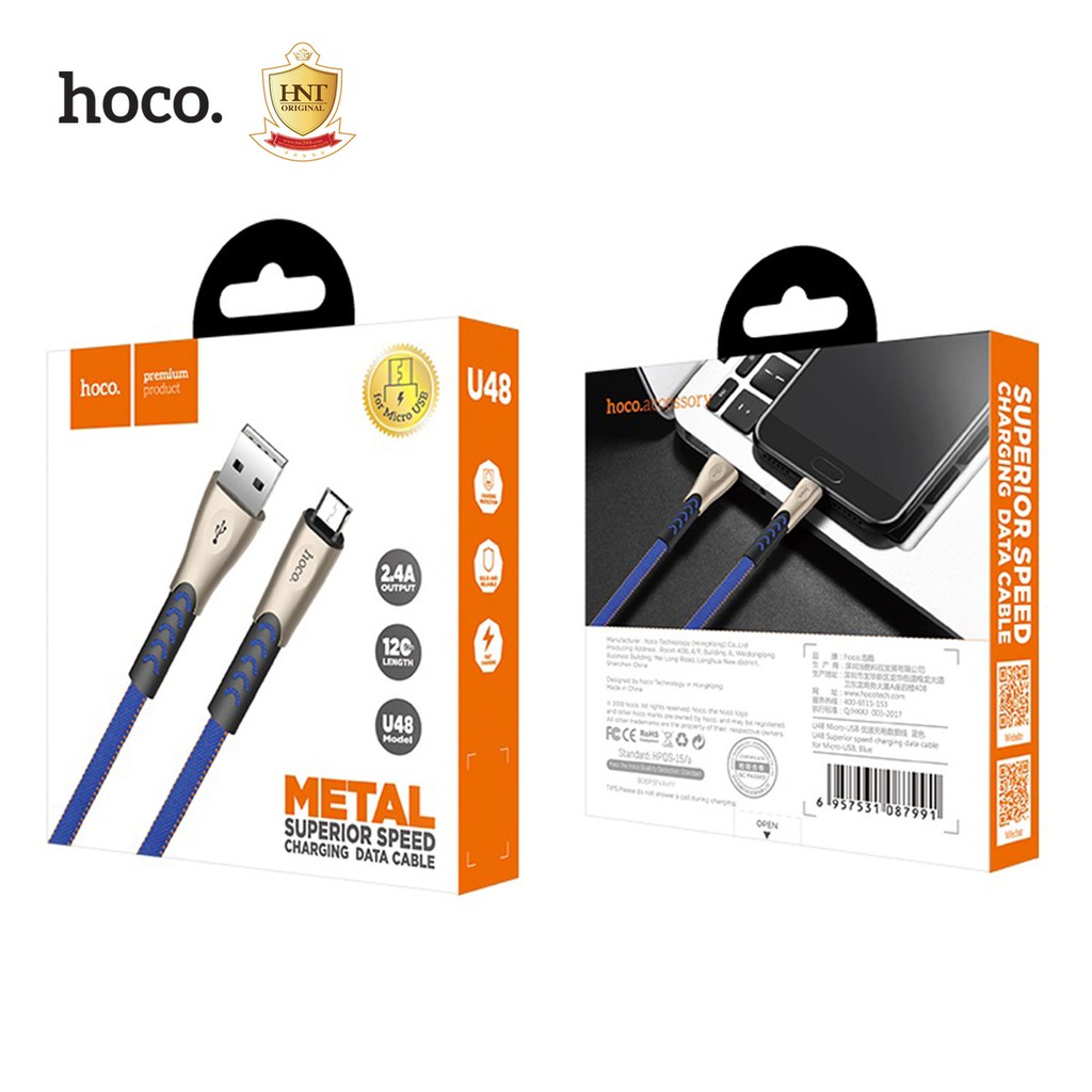 Hoco U48 สายชาร์จแบบถักพอร์ต forϊ-Phonε ,Micro,Type-c (แบบเลือก) กระแสไฟ 2.4A ความยาว1.2เมตร