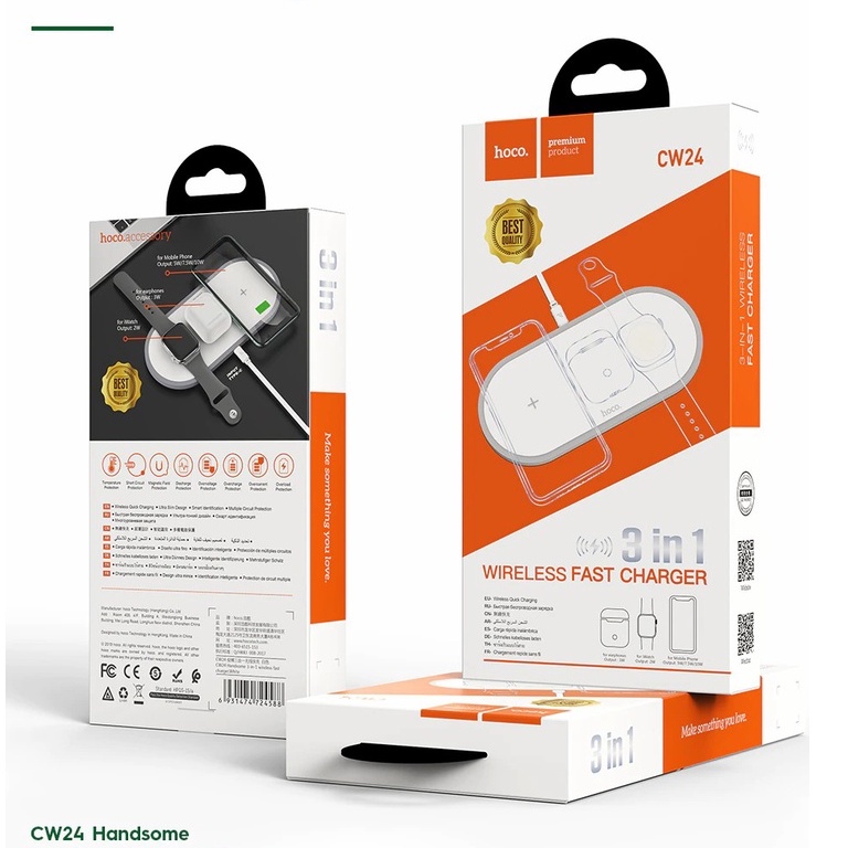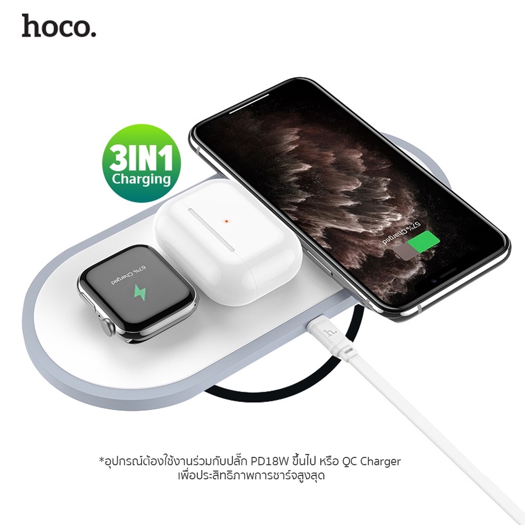 Hoco แท่นชาร์จไร้สาย 3-in-1 wireless fast charger ชาร์จได ้ 3 อุปกรณ์พร้อมกัน CW series cw24