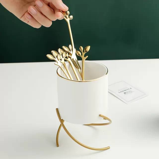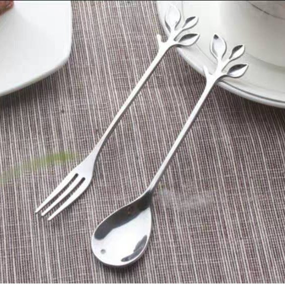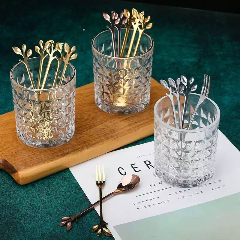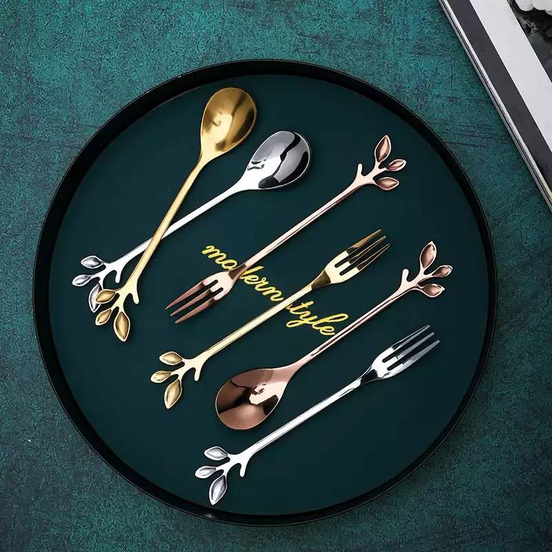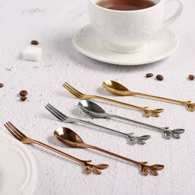ช้อนกาแฟสั้นใบไม้ สแตนเลส สีเงิน สีทอง