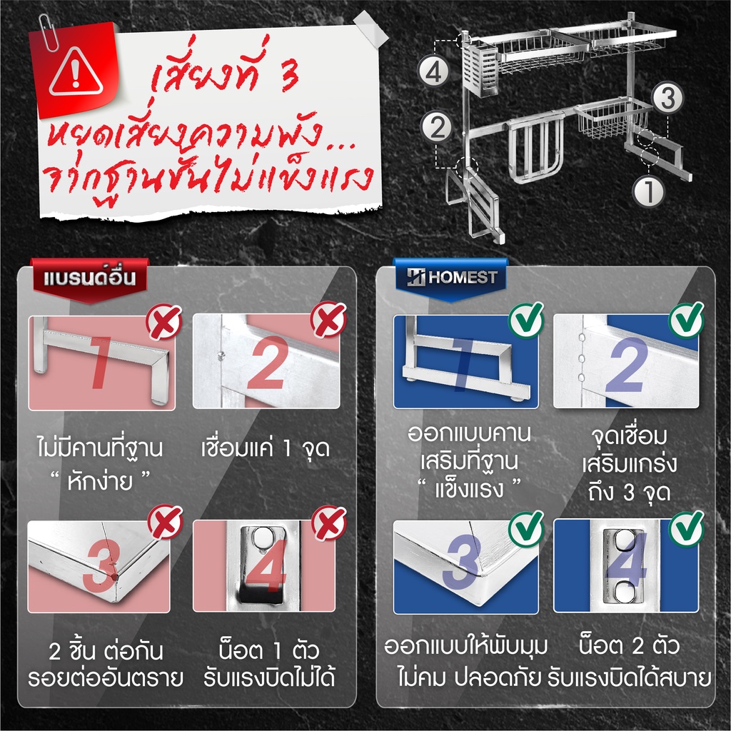 [คุณภาพดีที่สุด]ชั้นวางจานคร่อมซิงค์ ผลิตจากสแตนเลส SUS304 แท้ 100%