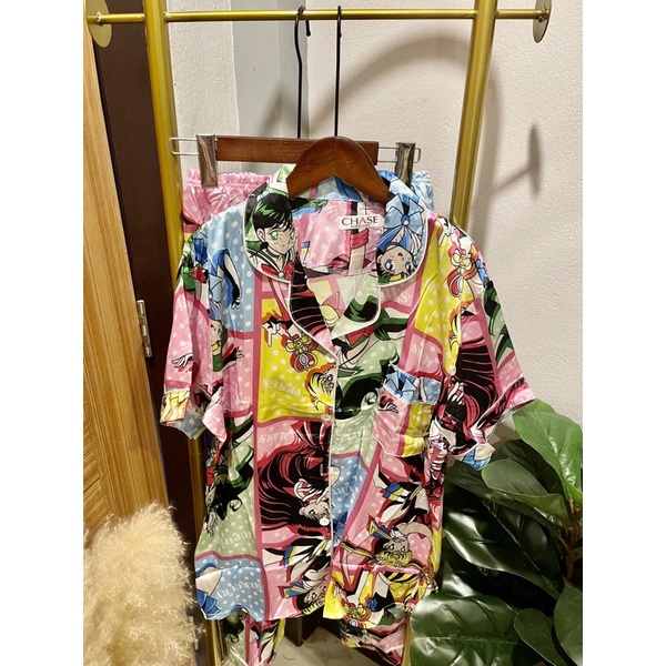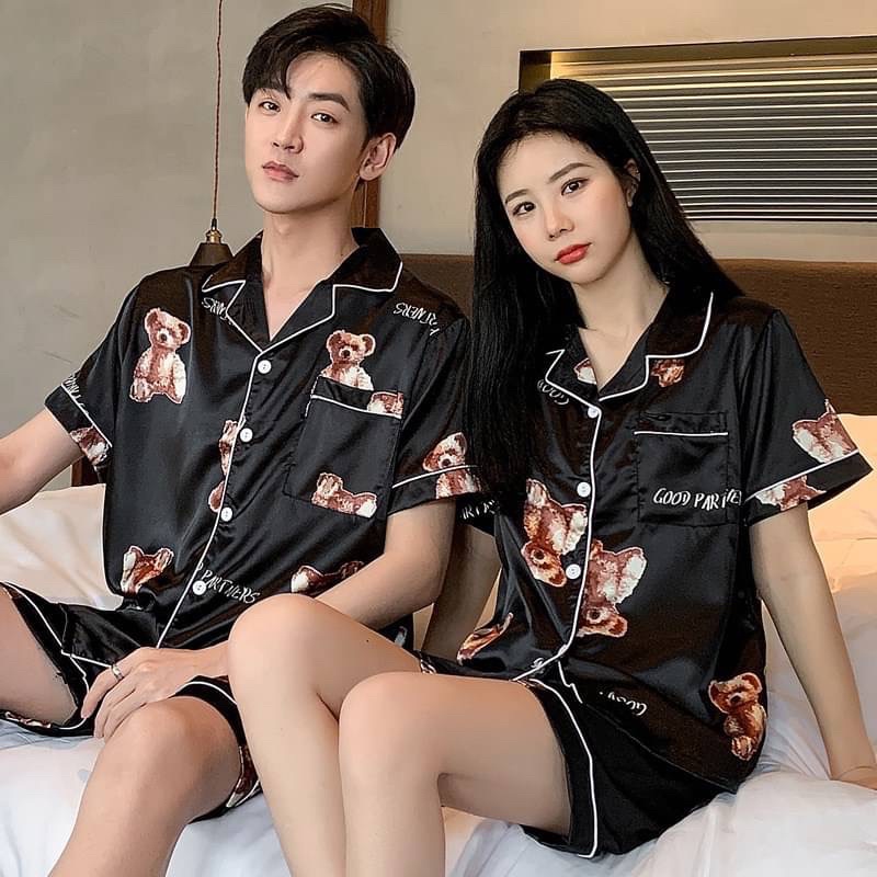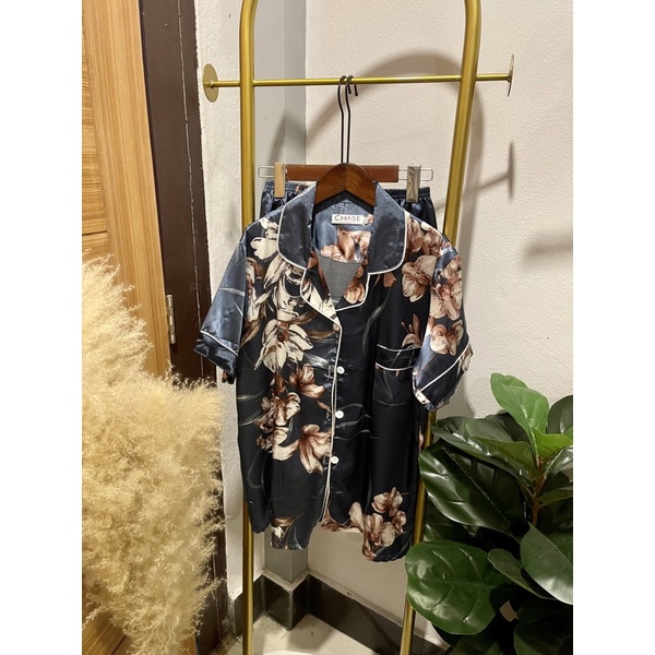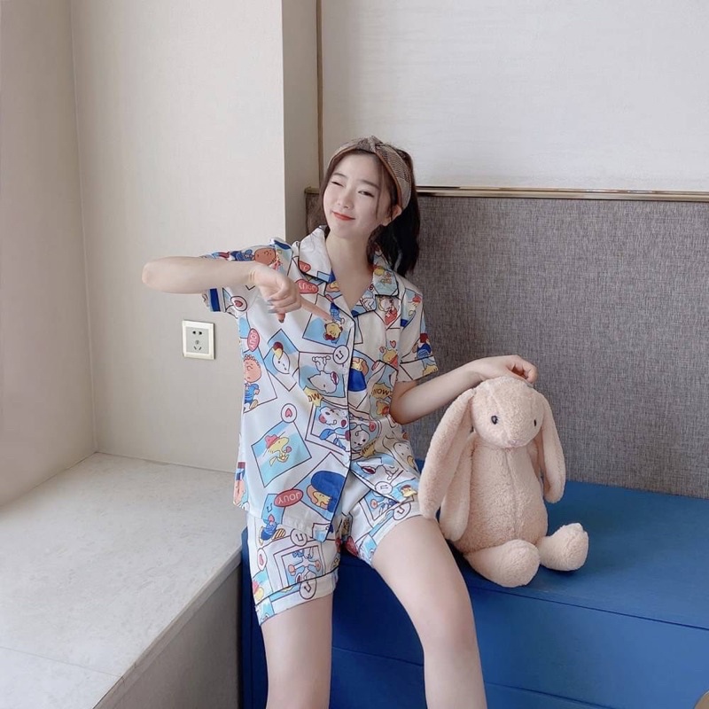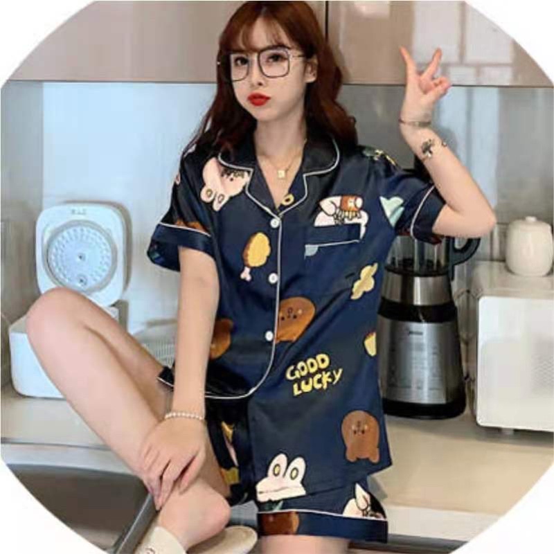 ชุดนอนซาตินแขนสั้นขาสั้นลายPrint