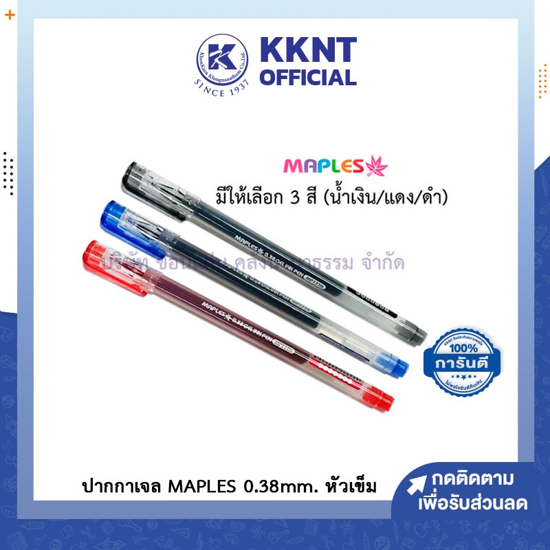💙KKNT | ปากกาเจล MAPLES 0.38mm. หัวเข็ม มีปลอก หมึกเข้ม Gel Ink Pen เมเปิ้ล MP777A ราคา/ด้าม